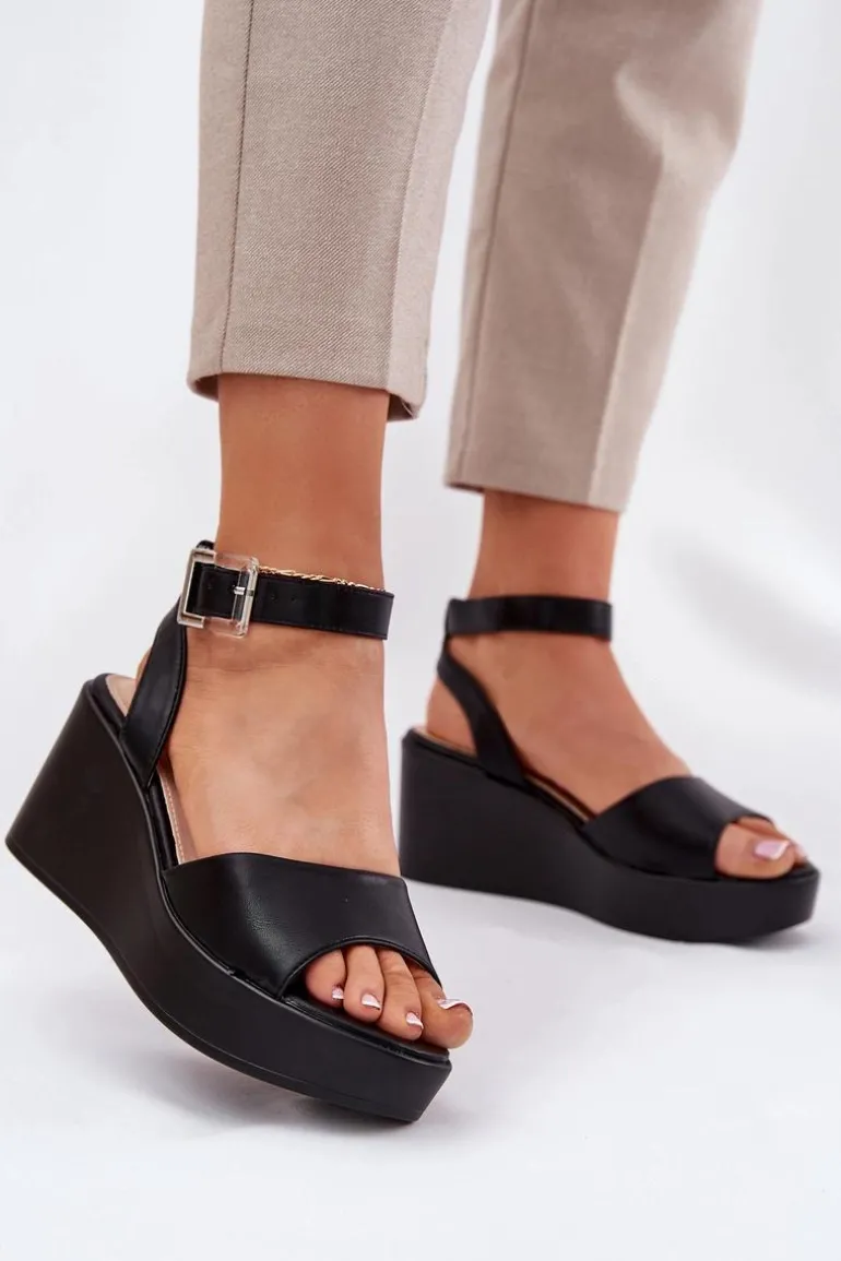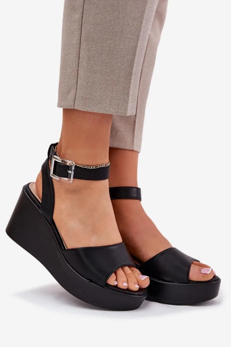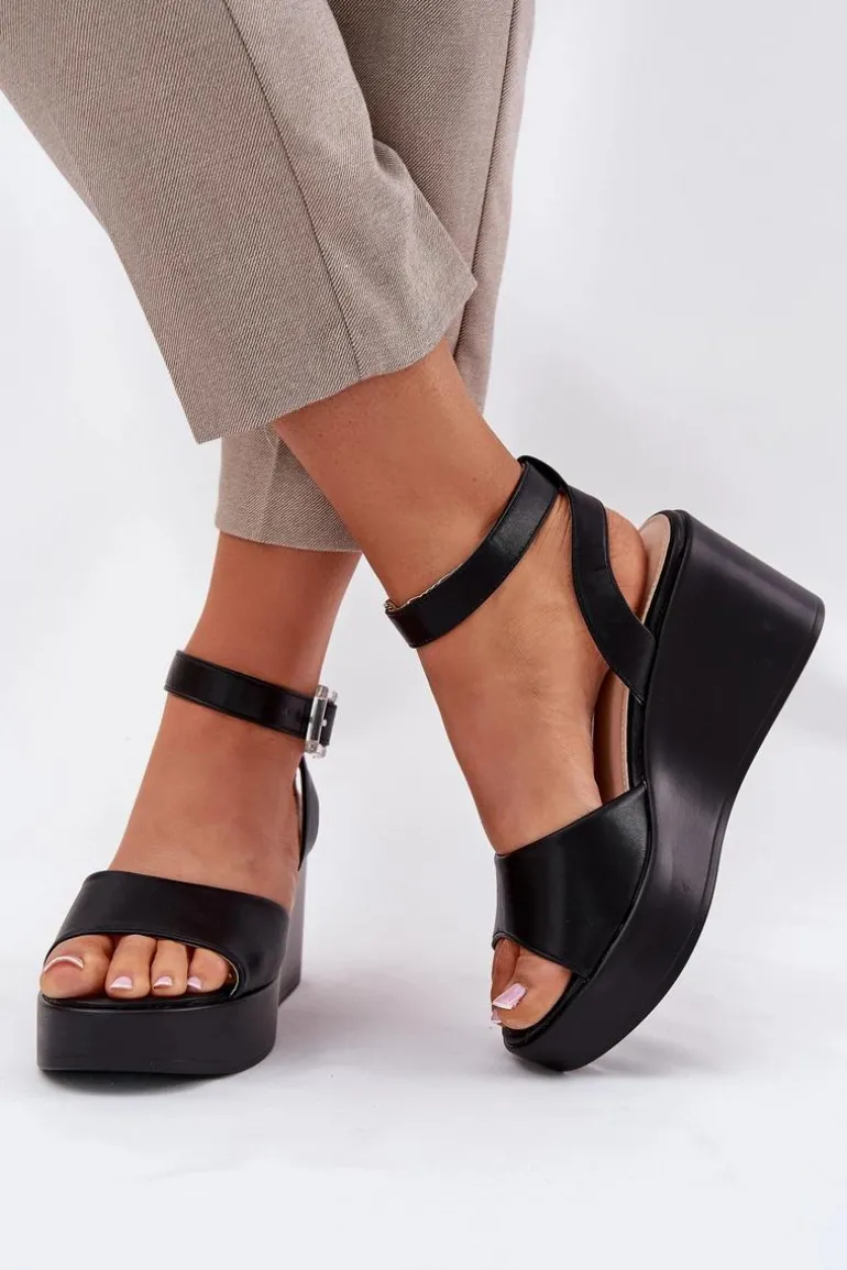 Damskie sandały z eko skóry to elegancka propozycja na letnie dni. Osadzone na koturnie, zapewniają komfort oraz stabilność przez cały dzień. Zapinane na klamrę z regulowanym paskiem, umożliwiają idealne dopasowanie do stopy. Miękka wkładka gwarantuje wygodę, a klasyczny fason sprawia, że te sandały doskonale komponują się z sukienkami oraz spodniami, dodając stylowego akcentu do każdej letniej stylizacji. Przy wyborze rozmiaru prosimy sugerować się tabelą rozmiarów.