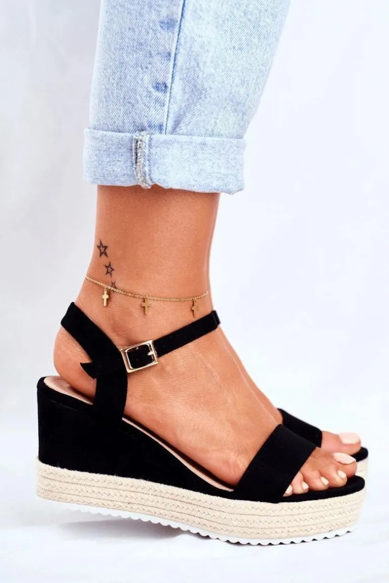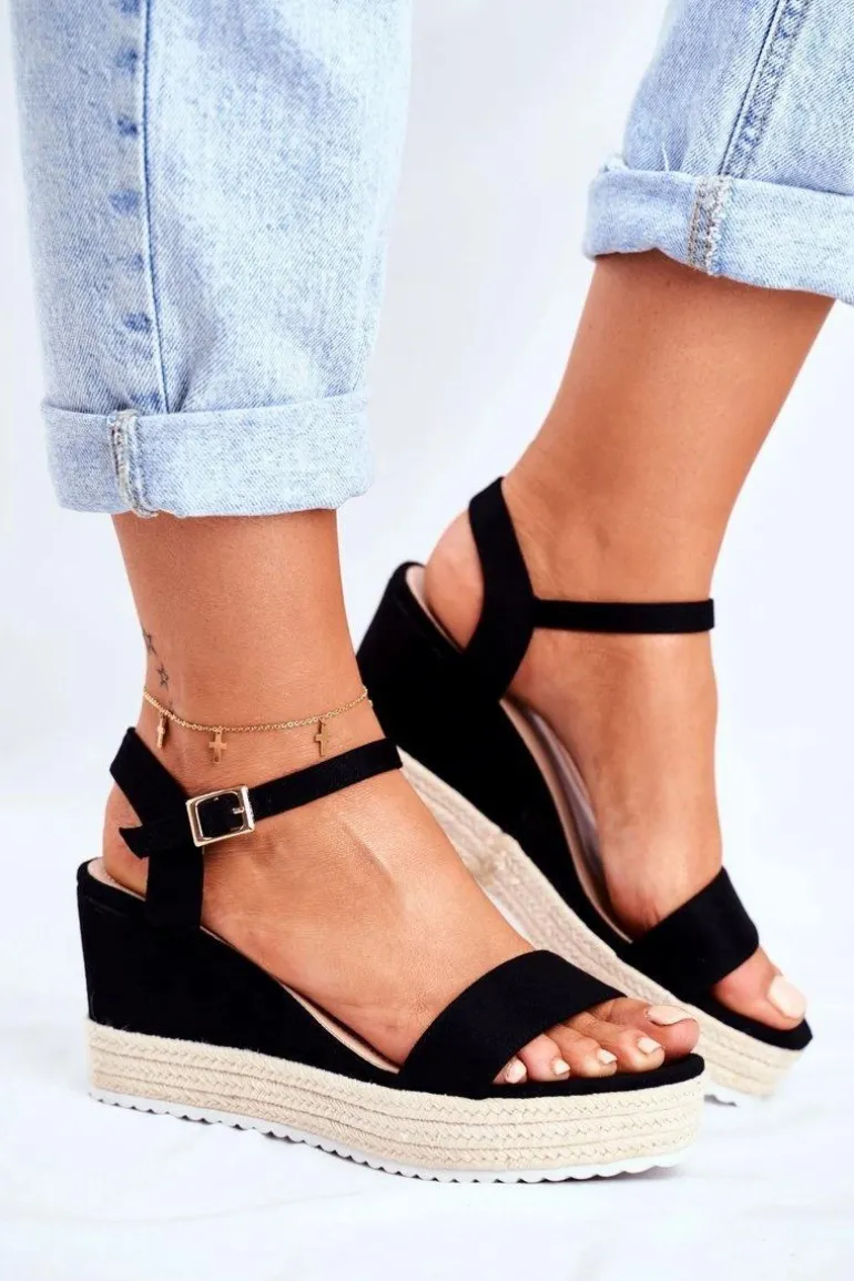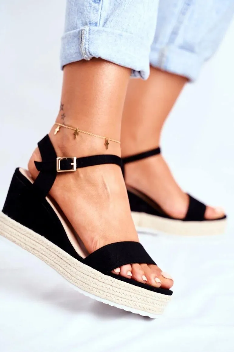 Sandały Damskie Na Koturnie Czarne Merdoe