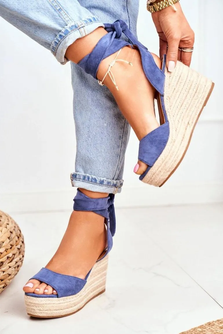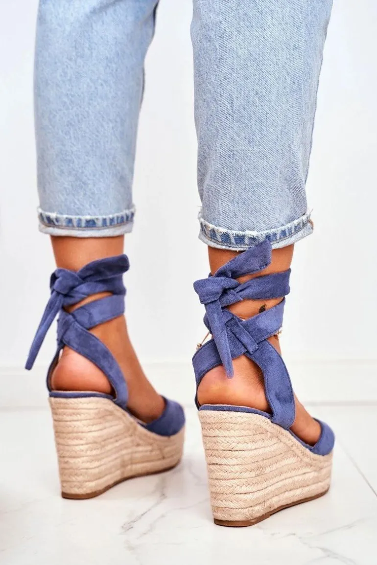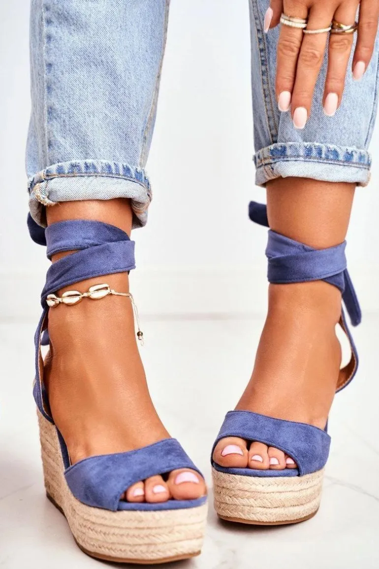 Sandały Damskie Na Koturnie Espadryle Niebieskie Ollie