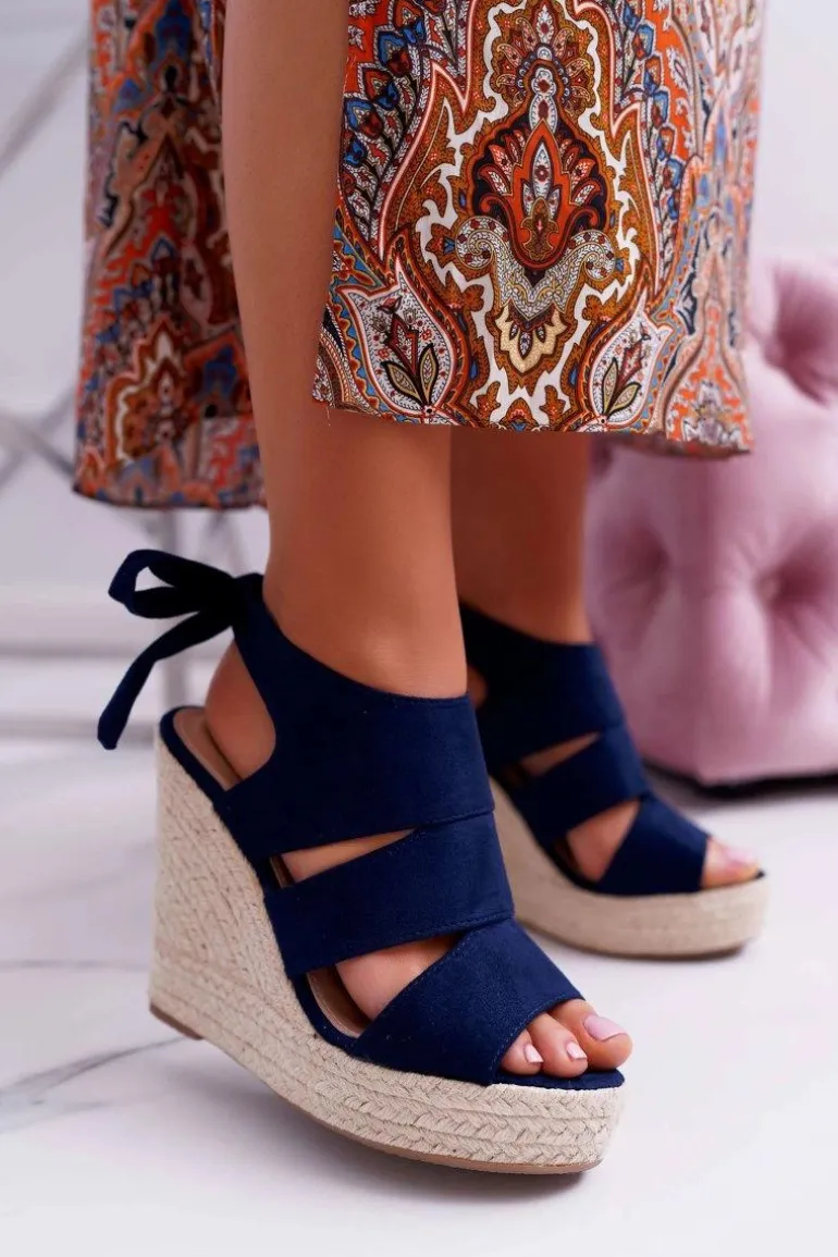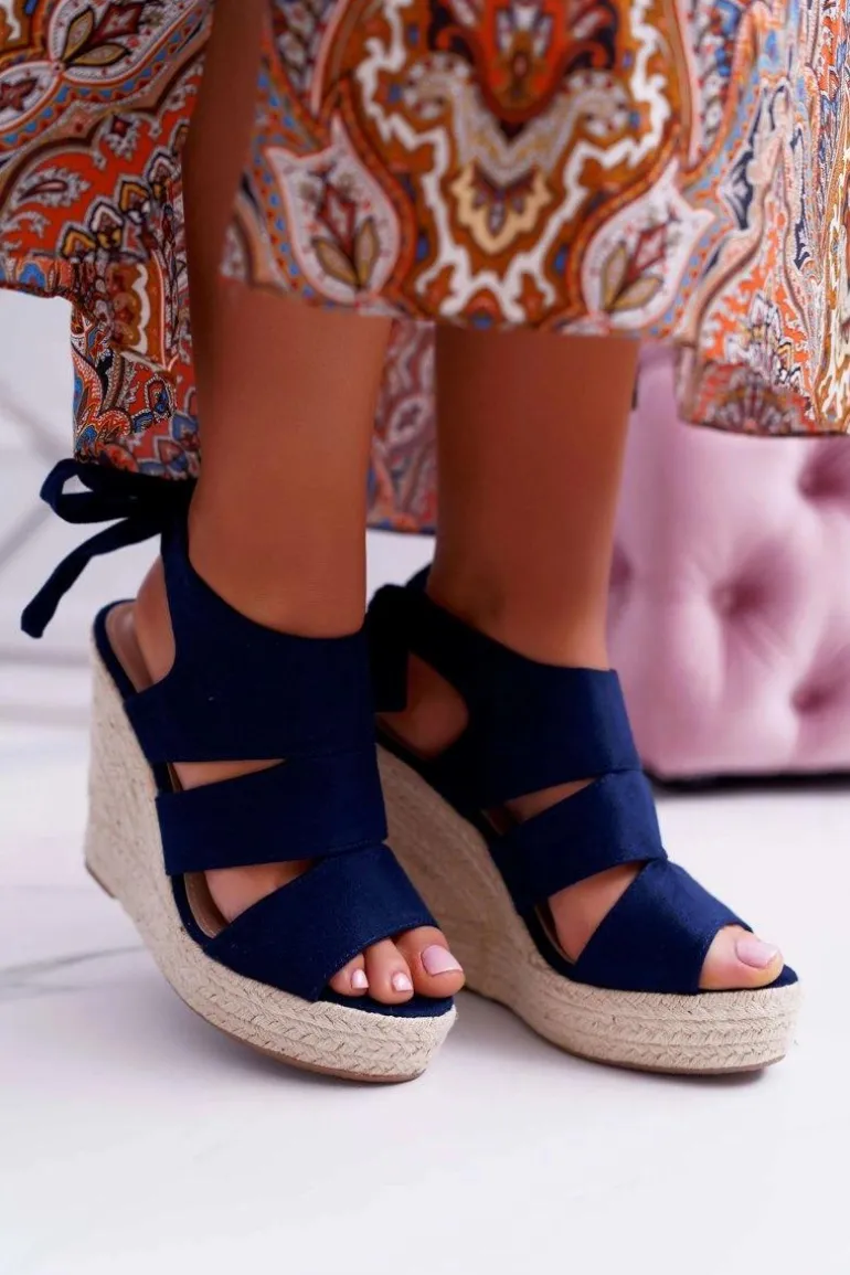 Sandały Damskie Na Koturnie Granatowe Yenga