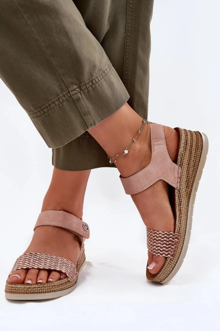 Sandały damskie od marki INBLU. Osadzone na delikatnym koturnie. Zapinane na rzep, co zapewnia doskonałe dopasowanie do stopy. Wkładka wewnętrzna „COMFORT ANATOMICO” profilowana, dostosowana do kształtu anatomicznego stopy, wykonana z naturalnej skóry. Spód dwuwarstwowy wykonany z lekkiego i elastycznego tworzywa – poliuretanu – zapewnia sprężystość i bardzo dobre przenoszenie obciążeń na podłoże. Przy wyborze rozmiaru prosimy kierować się tabelą rozmiarów.