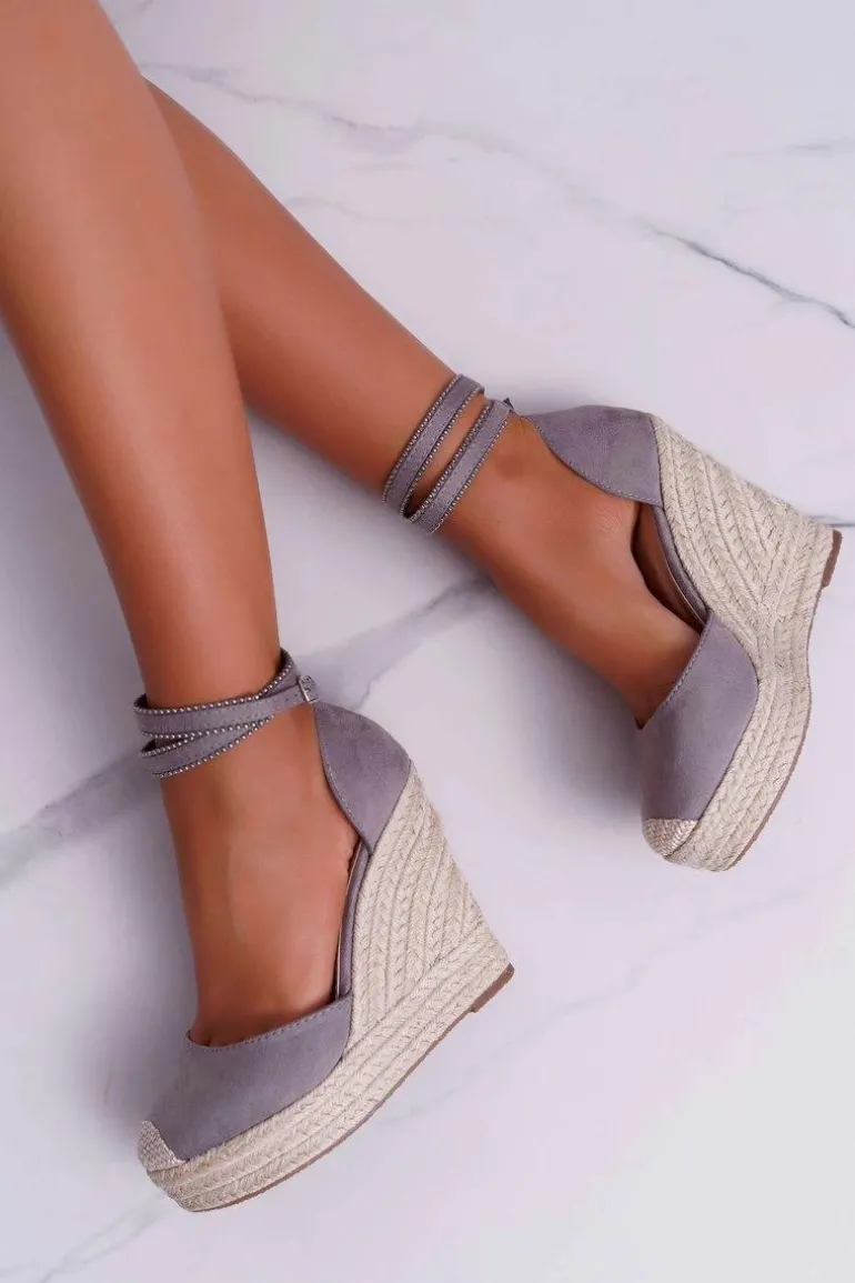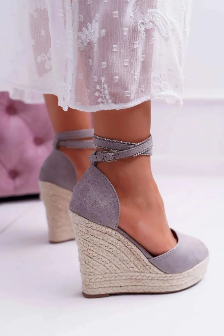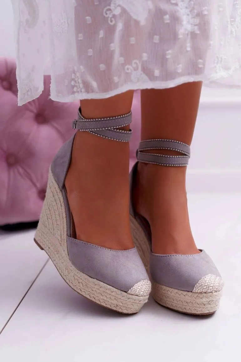 Sandały Damskie Na Koturnie Lniane Szare Canterola