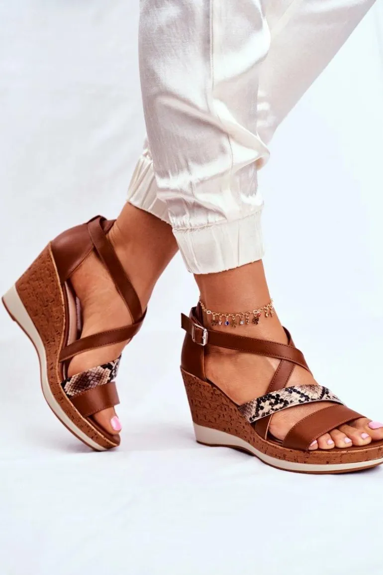 Sandały Damskie Na Koturnie Sergio Leone Brązowe SK309