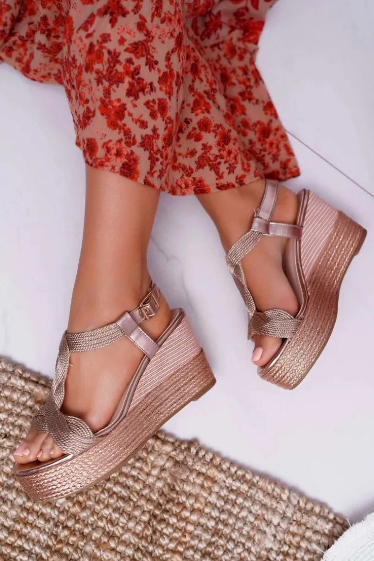 Sandały Damskie Na Koturnie Sznurek Champagne Larone