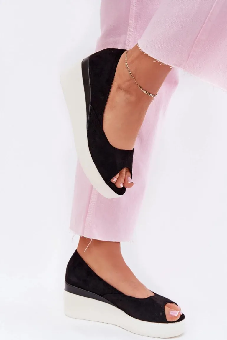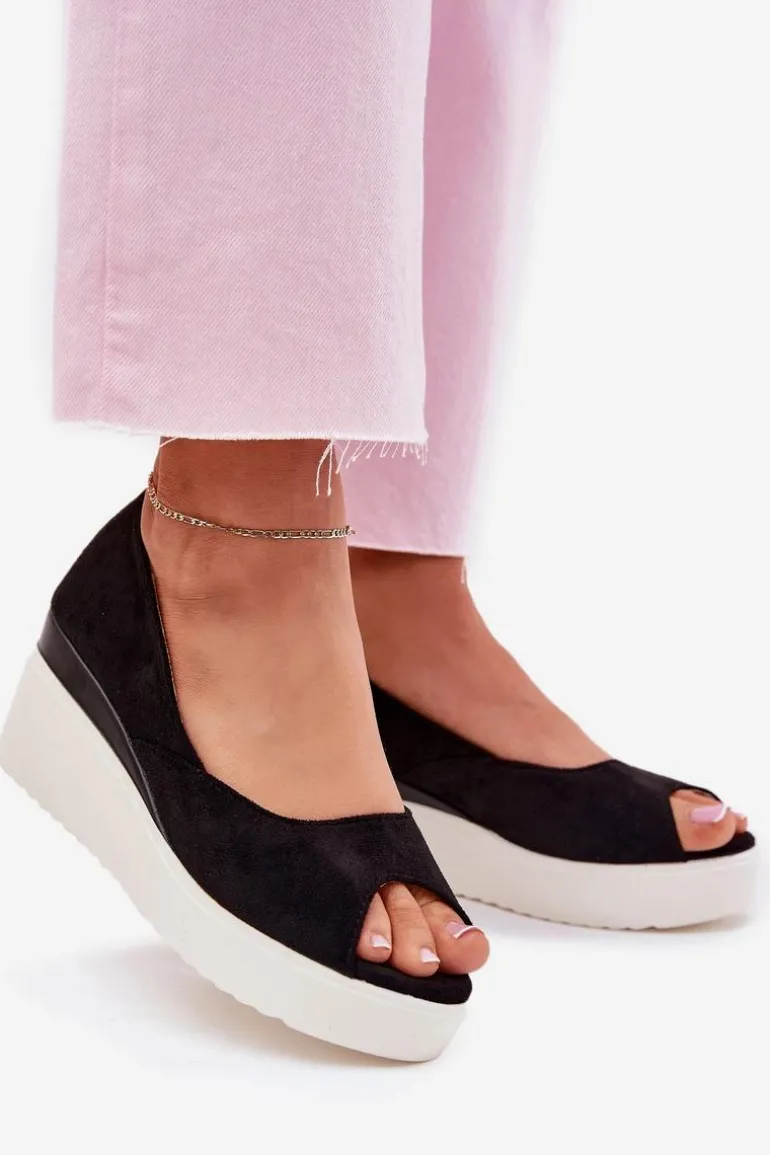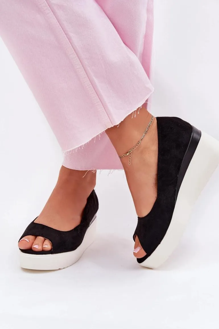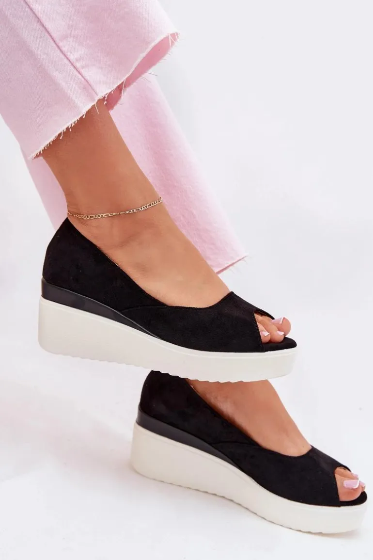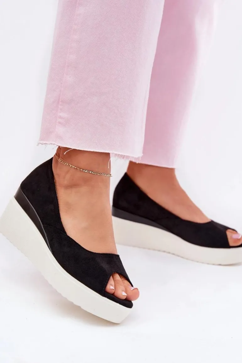 Sandały Damskie Na Koturnie Z Eko Zamszu Czarne Velira