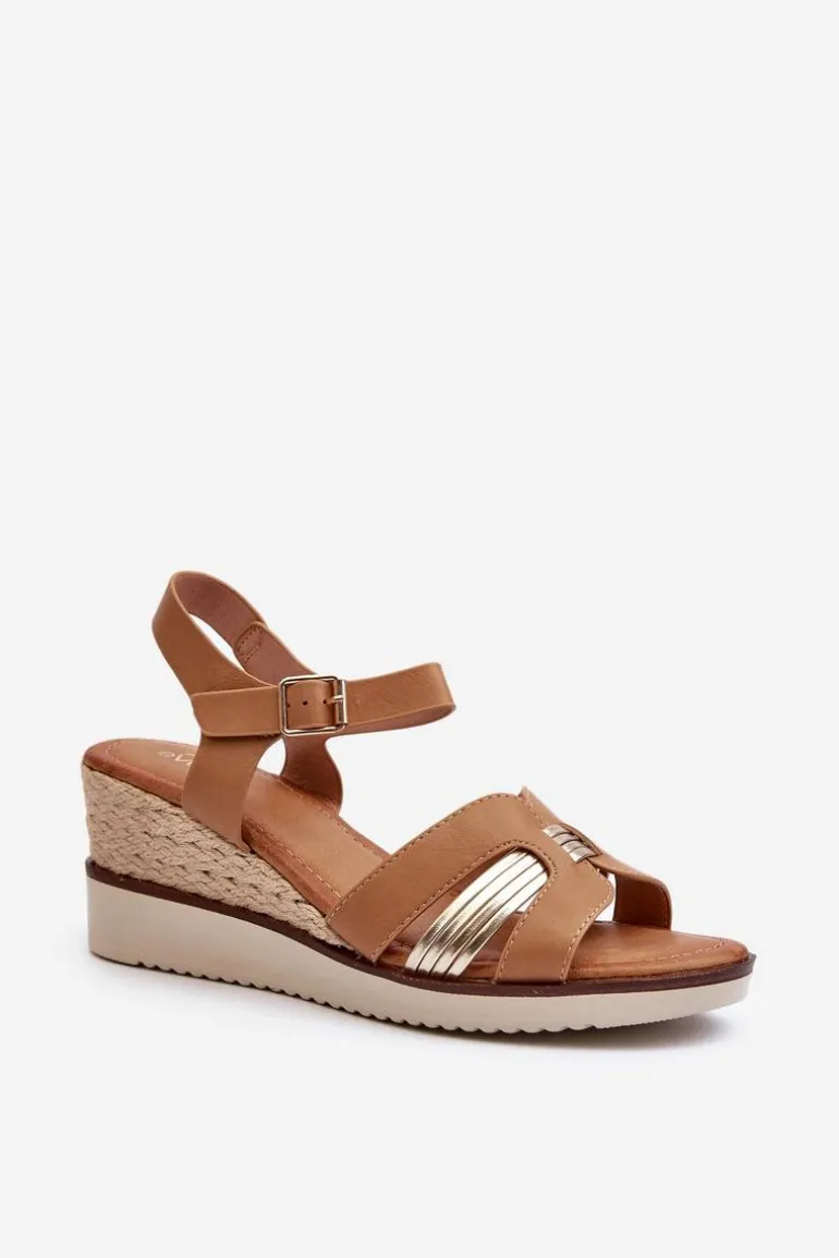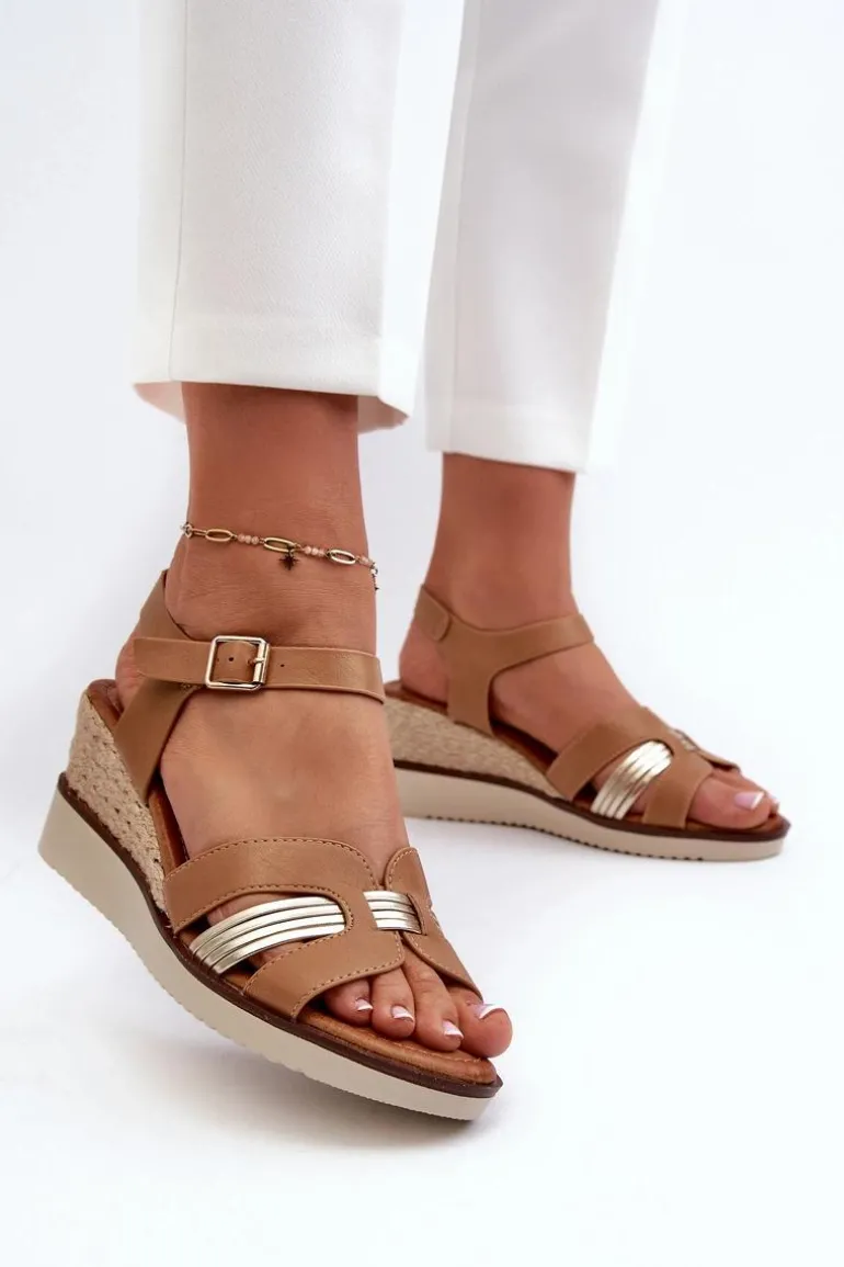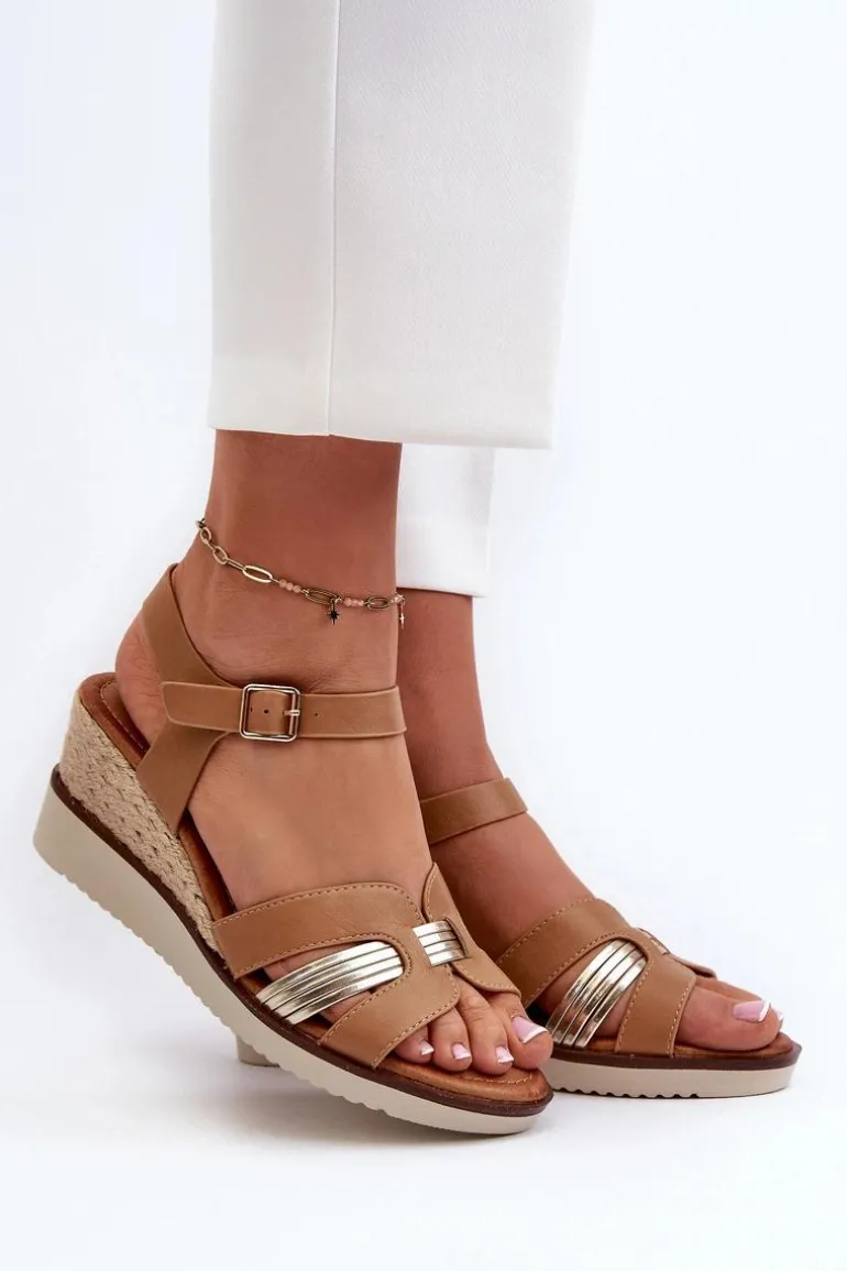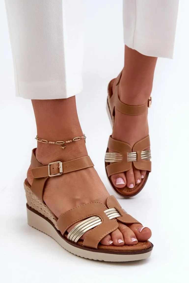 Sandały Damskie Na Koturnie Z Plecionką Brązowe Starlenna
