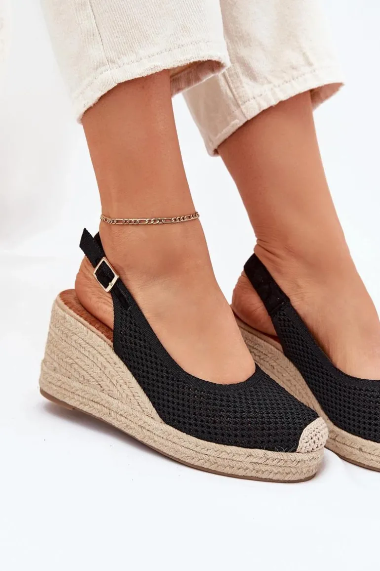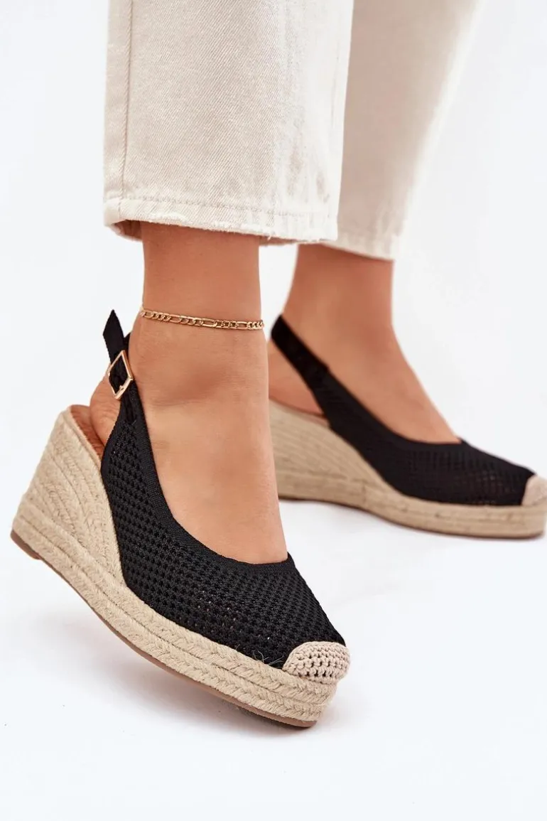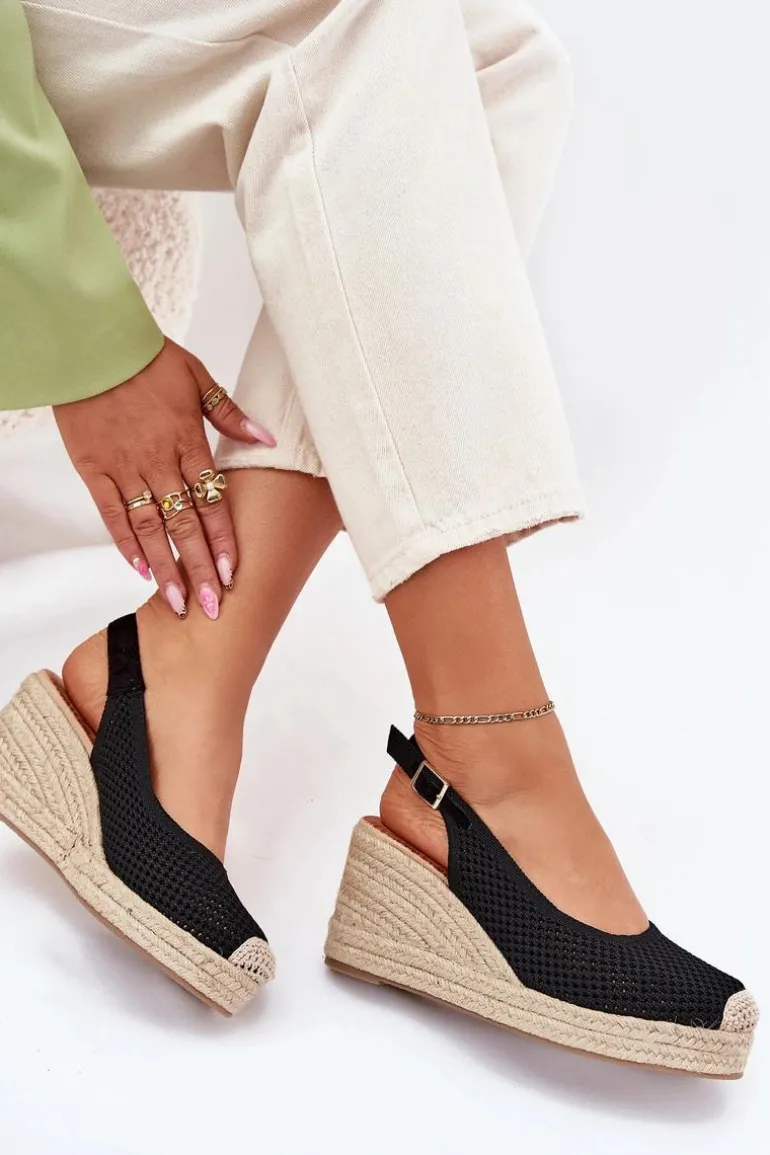 Sandały damskie wykonane z materiału tekstylnego to idealna propozycja na ciepłe dni. Osadzone na koturnie z plecionką, dodają subtelnej wysokości, zapewniając jednocześnie stabilność i wygodę. Zakryte noski. Miękka wkładka zapewnia komfort przez cały dzień. Zapinane na sprzączkę z regulowanym paskiem. Doskonałe do letnich stylizacji, łączą funkcjonalność z modnym wyglądem, stanowiąc świetny wybór na codzienne wyjścia. Przy wyborze rozmiaru prosimy sugerować się tabelą rozmiarów.