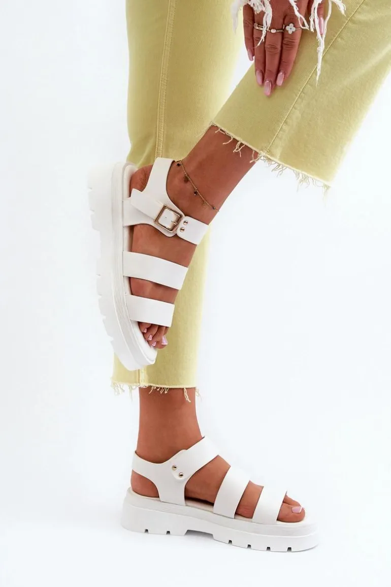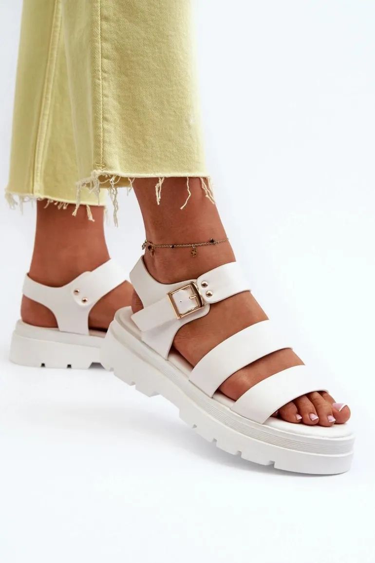 Modne sandały damskie na grubej podeszwie wykonane z eko skóry to idealny wybór na letnie dni. Zapinane na regulowany pasek ze sprzączką, gwarantują doskonałe dopasowanie do stopy. Dodatkowo ich designerski wygląd sprawia, że doskonale komponują się z różnymi stylizacjami, dodając im nuty nowoczesności i świeżości. Przy wyborze rozmiaru prosimy sugerować się tabelą rozmiarów.