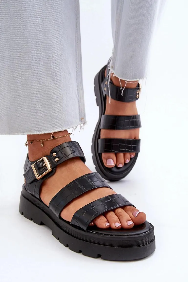 Sandały Damskie Na Masywnej Podeszwie Czarne Nicarda