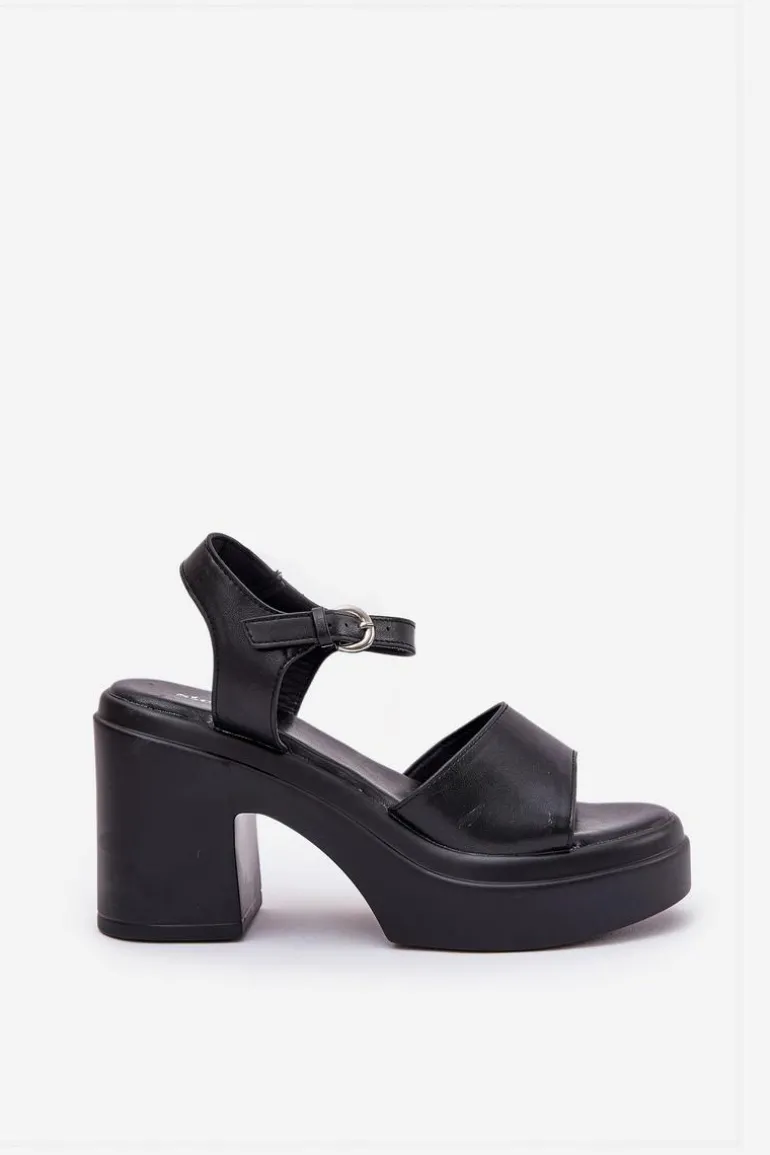 Sandały damskie wykonane ze skóry ekologicznej. Platforma oraz masywny obcas w postaci słupka dodają pewności kroku, jednocześnie zapewniając stabilność. Zapinane wokół kostki na sprzączkę z regulowanym paskiem. Doskonałe na wiele różnych okazji! Przy wyborze rozmiaru prosimy sugerować się tabelą rozmiarów.