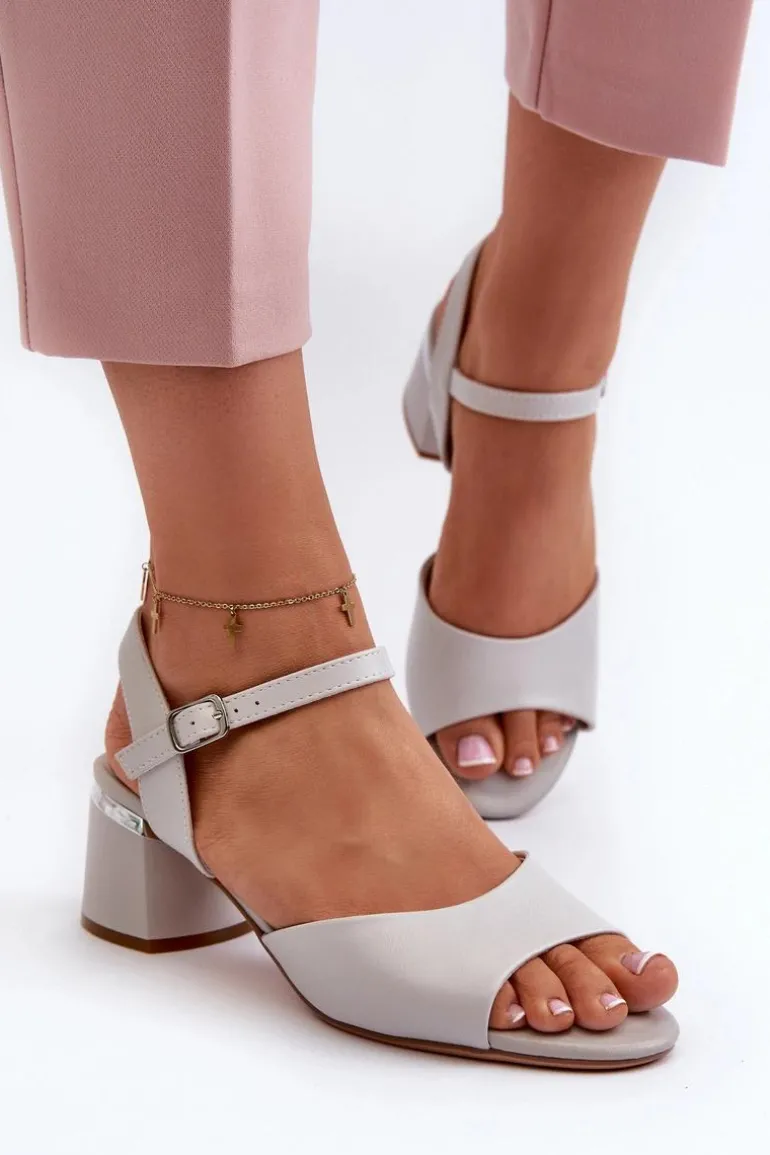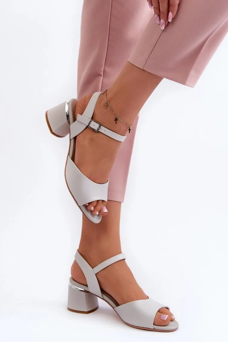 Sandały Damskie Na Niskim Obcasie Eko Skórzane Sergio Leone SK876 Szare