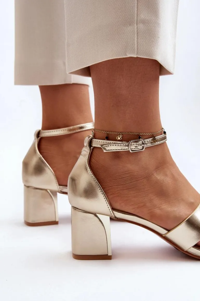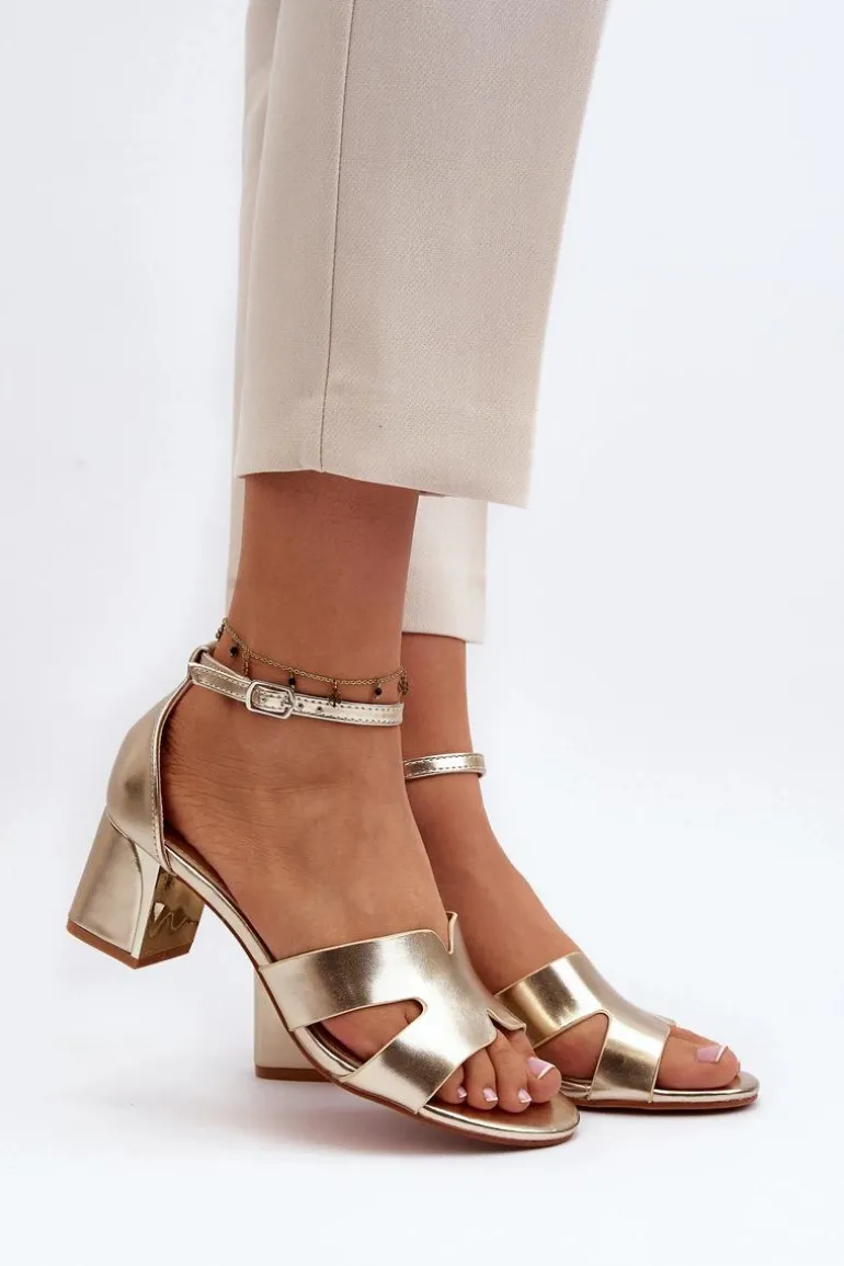 Sandały damskie osadzone na obcasie w postaci klocka z lustrzanym elementem. Zapinane na regulowany pasek ze sprzączką, łatwo dopasujesz je do swojej stopy, co zapewni dodatkowy komfort. Ten model to świetna propozycja dla każdej kobiety, która ceni sobie zarówno komfort, jak i styl w letnich stylizacjach! Przy wyborze rozmiaru prosimy sugerować się tabelą rozmiarów.