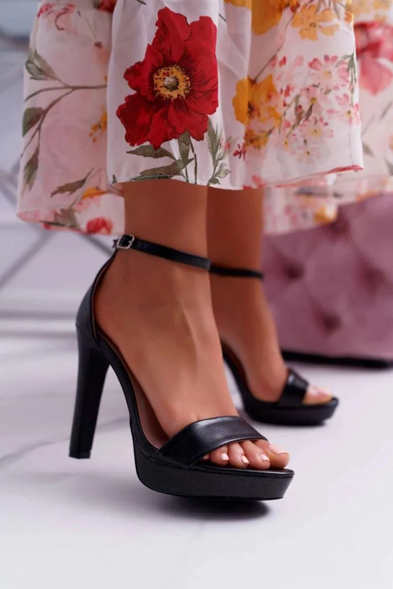 Sandały Damskie Na Obcasie Platformie Czarne Ellania