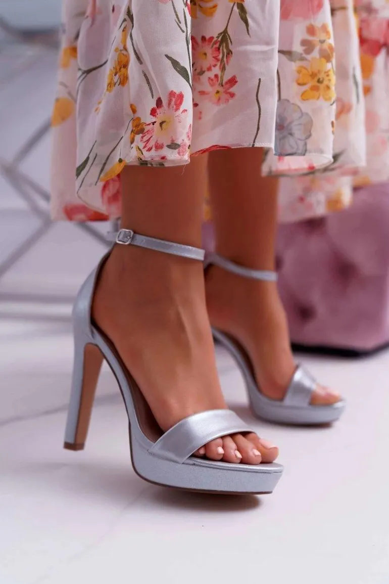 Sandały Damskie Na Obcasie Platformie Srebrne Ellania