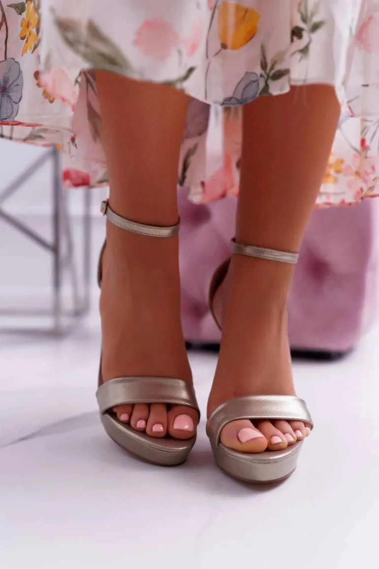 Sandały Damskie Na Obcasie Platformie Złote Ellania