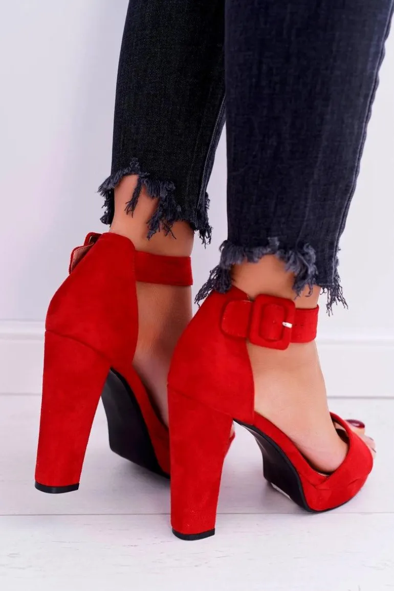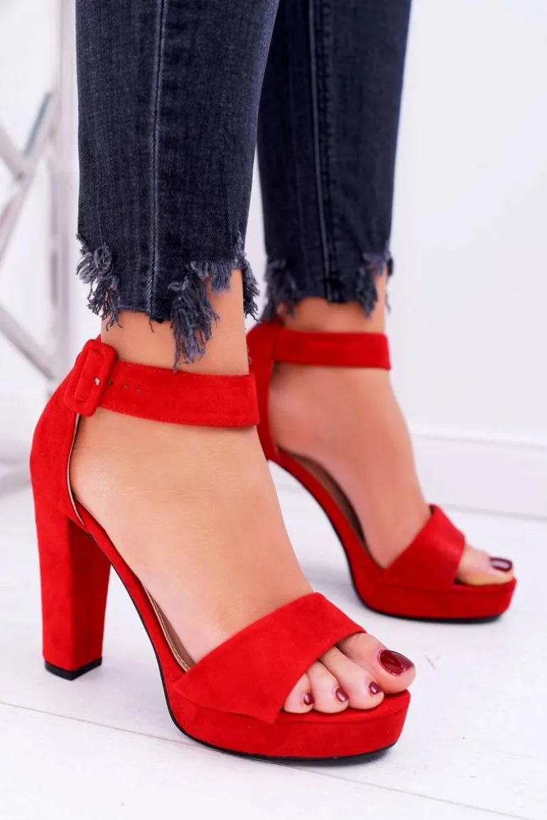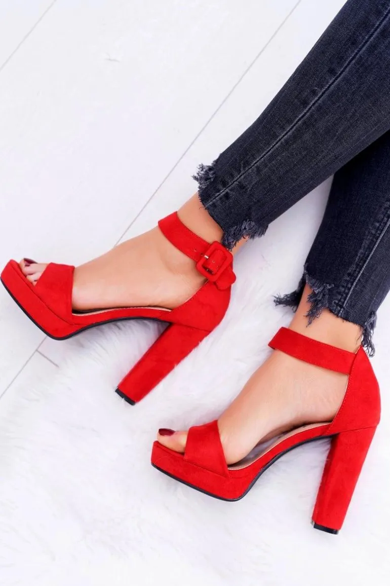 Sandały Damskie Na Obcasie Słupku Zamsz Czerwone ShakeUp