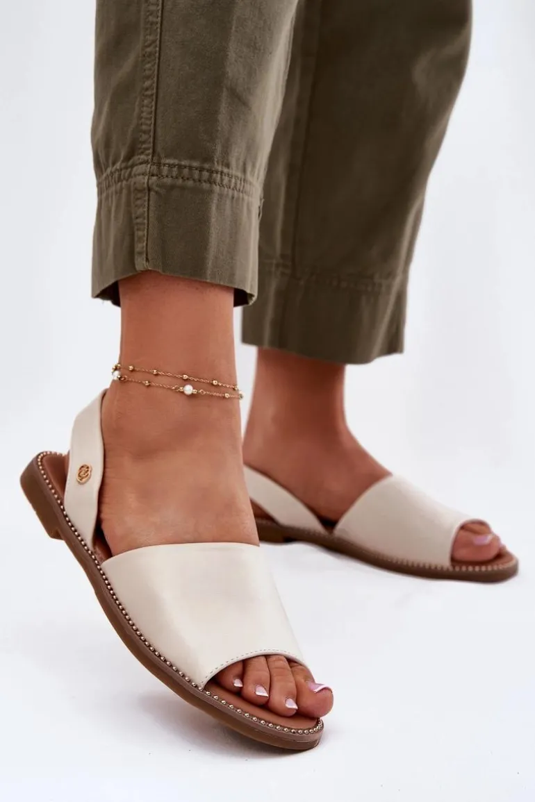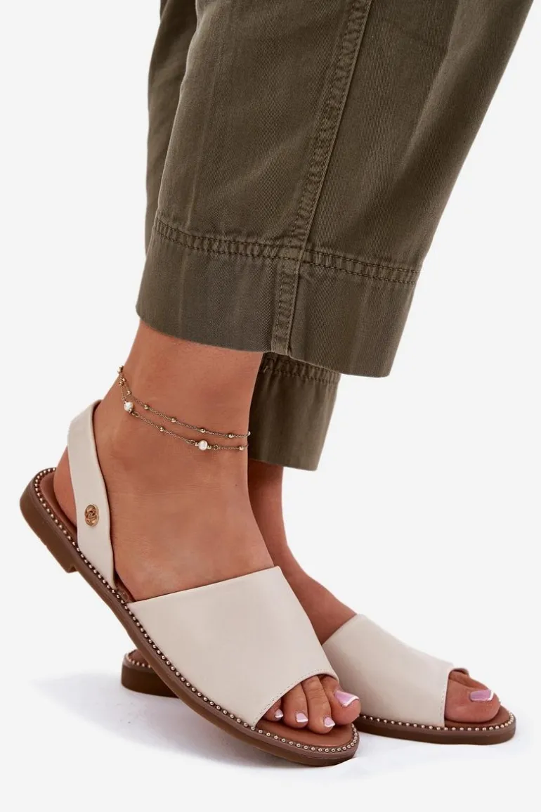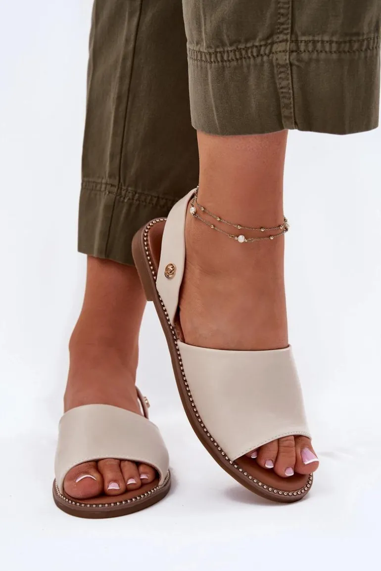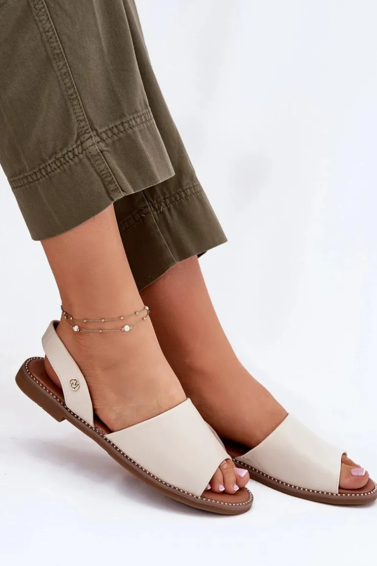 Sandały damskie z eko skóry to elegancka propozycja na ciepłe dni. Osadzone na płaskim obcasie, zapewniają wygodę i komfort przez cały dzień. Na pasku z tyłu znajduje się subtelny ozdobny detal, który dodaje uroku. Idealne do sukienek, spódnic oraz spodni materiałowych, stanowią doskonałe uzupełnienie letnich outfitów. Przy wyborze rozmiaru prosimy kierować się tabelą rozmiarów.