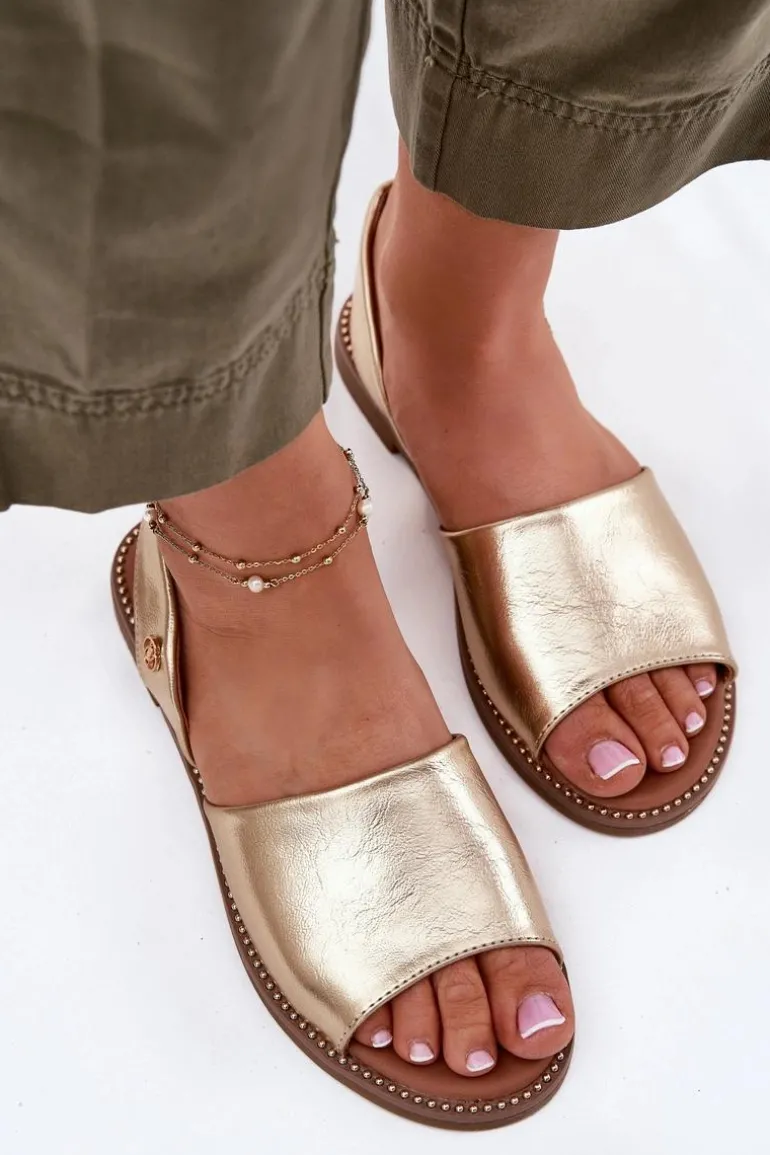 Sandały damskie z eko skóry to elegancka propozycja na ciepłe dni. Osadzone na płaskim obcasie, zapewniają wygodę i komfort przez cały dzień. Na pasku z tyłu znajduje się subtelny ozdobny detal, który dodaje uroku. Idealne do sukienek, spódnic oraz spodni materiałowych, stanowią doskonałe uzupełnienie letnich outfitów. Przy wyborze rozmiaru prosimy kierować się tabelą rozmiarów.
