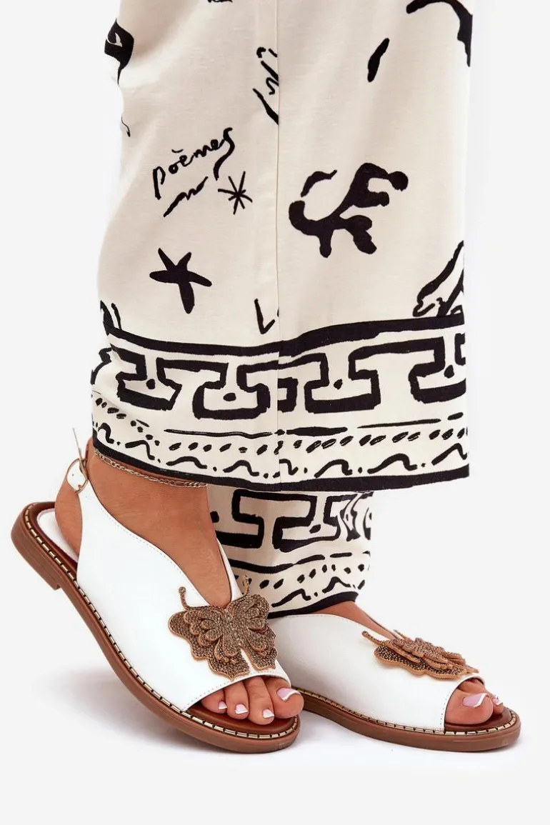 Sandały Damskie Na Płaskim Obcasie Z Ozdobą Białe Setorina