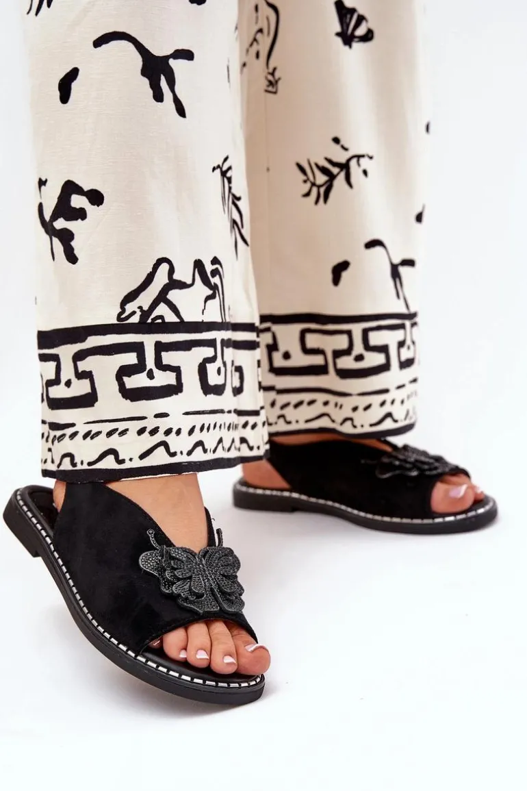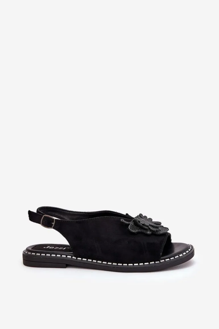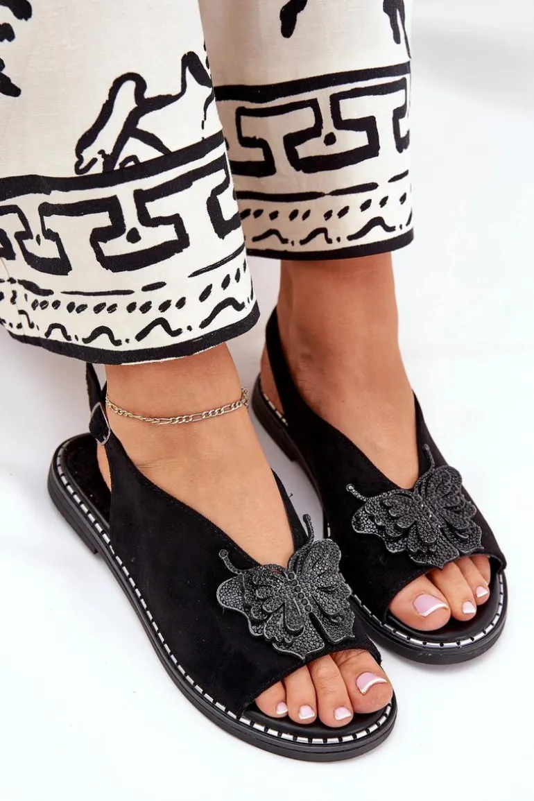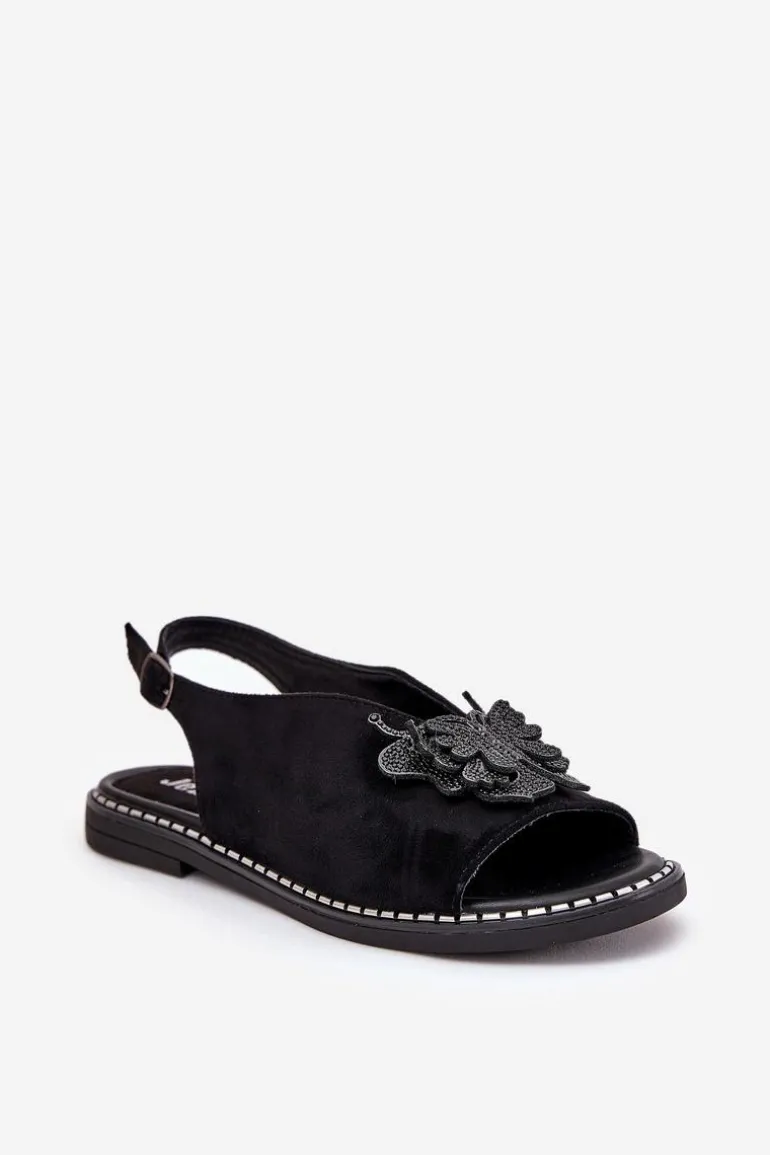 Sandały Damskie Na Płaskim Obcasie Z Ozdobą Czarne Setorina
