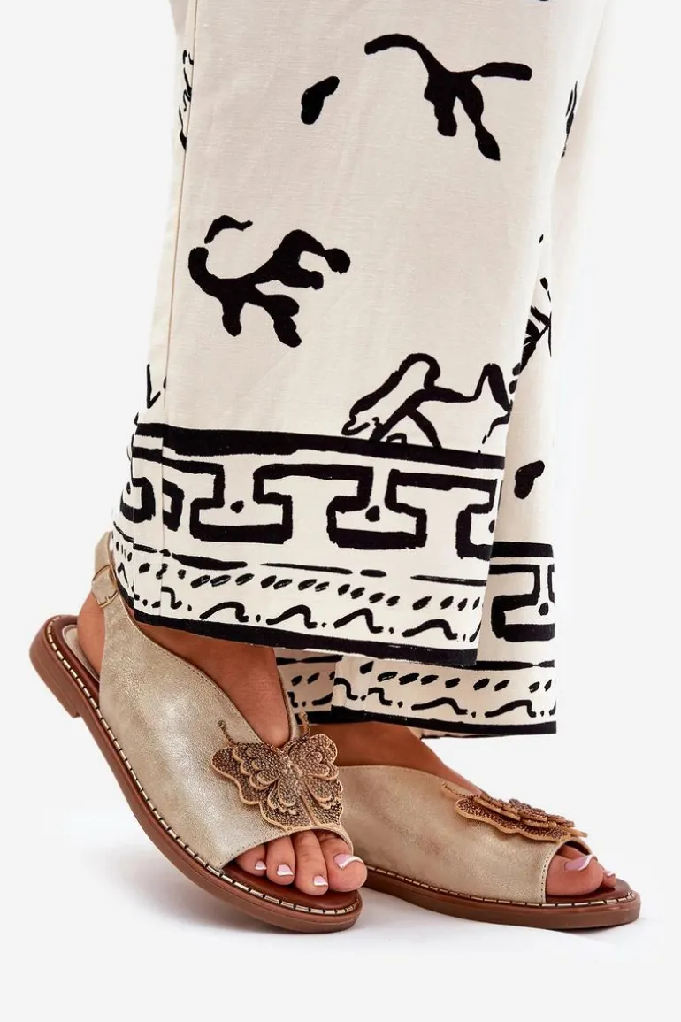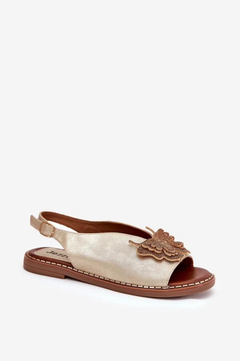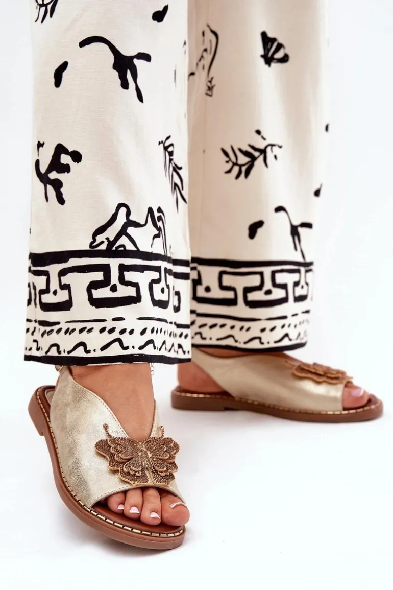 Sandały Damskie Na Płaskim Obcasie Z Ozdobą Złote Setorina