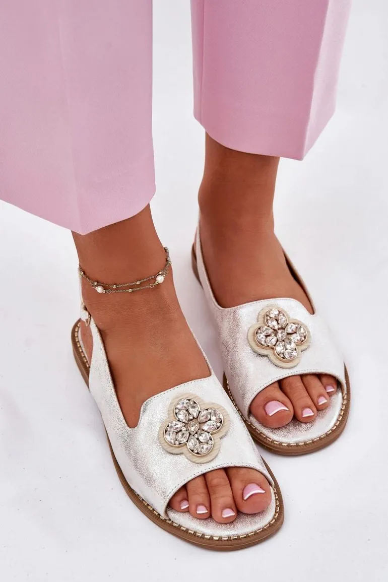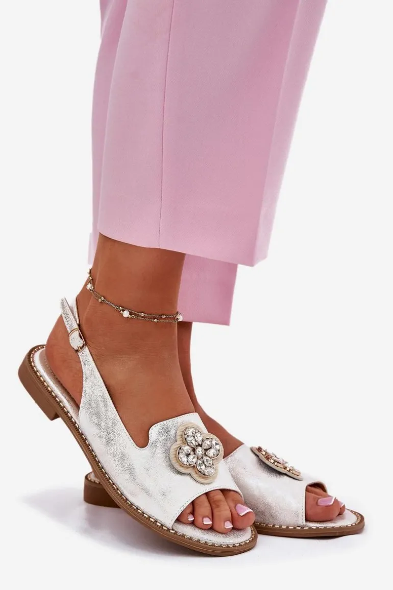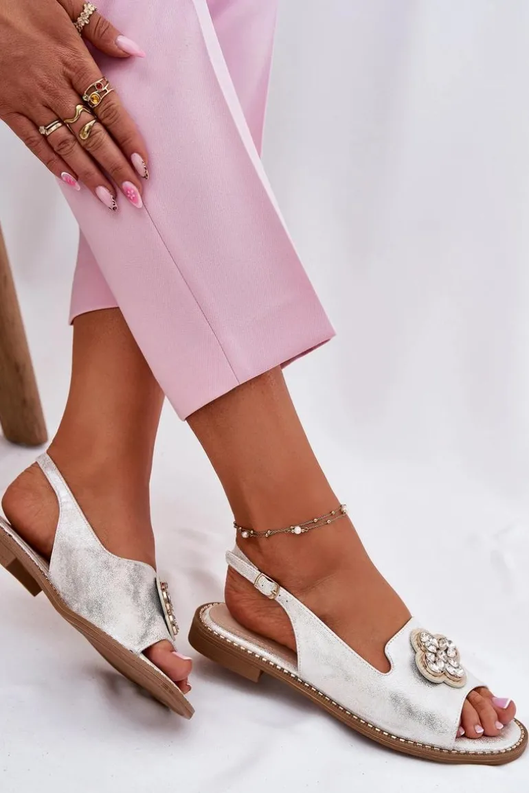 Sandały Damskie Na Płaskim Obcasie Z Ozdobnym Detalem S.Barski KV51-080 Srebrne