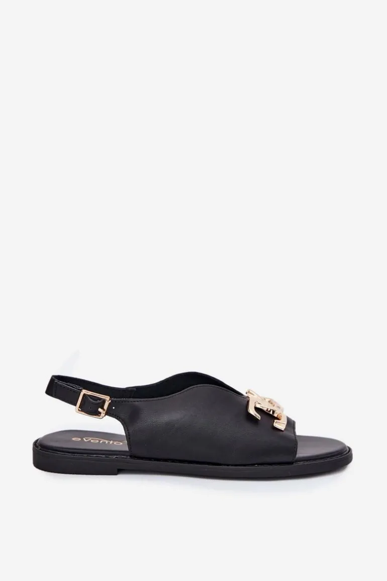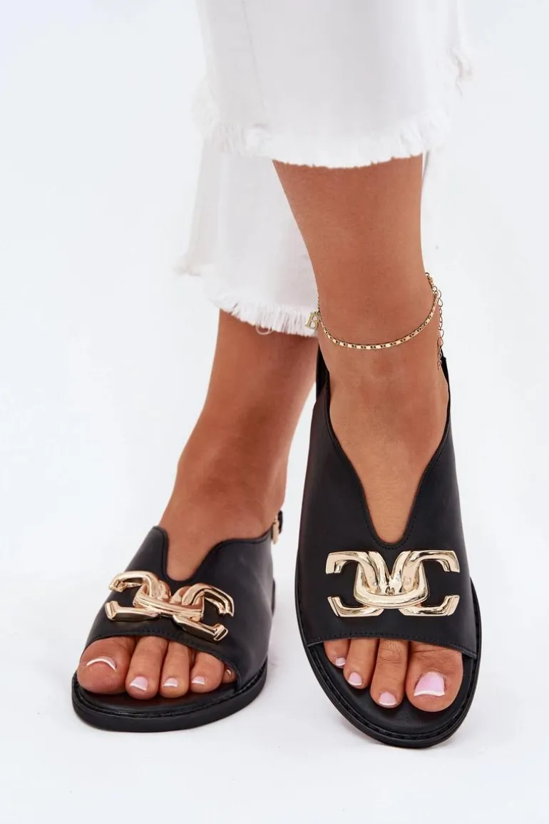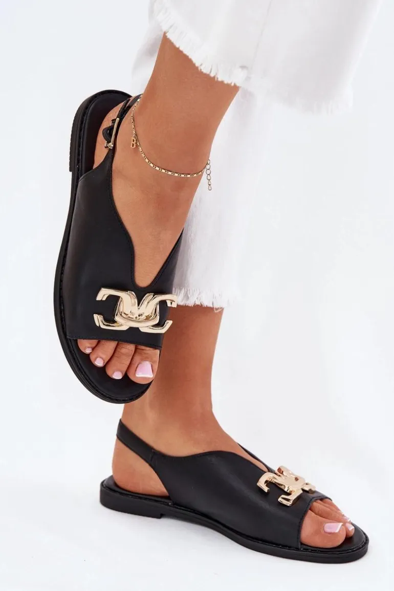 Sandały damskie z eko skóry na płaskim obcasie to doskonała propozycja na ciepłe dni. Model wyróżnia się złotą ozdobą, która dodaje im wyjątkowego uroku. Zapinane na klamrę z regulowanym paskiem, zapewniają idealne dopasowanie do stopy. Doskonałe do letnich sukienek, spódnic i spodni. Przy wyborze rozmiaru prosimy kierować się tabelą rozmiarów.