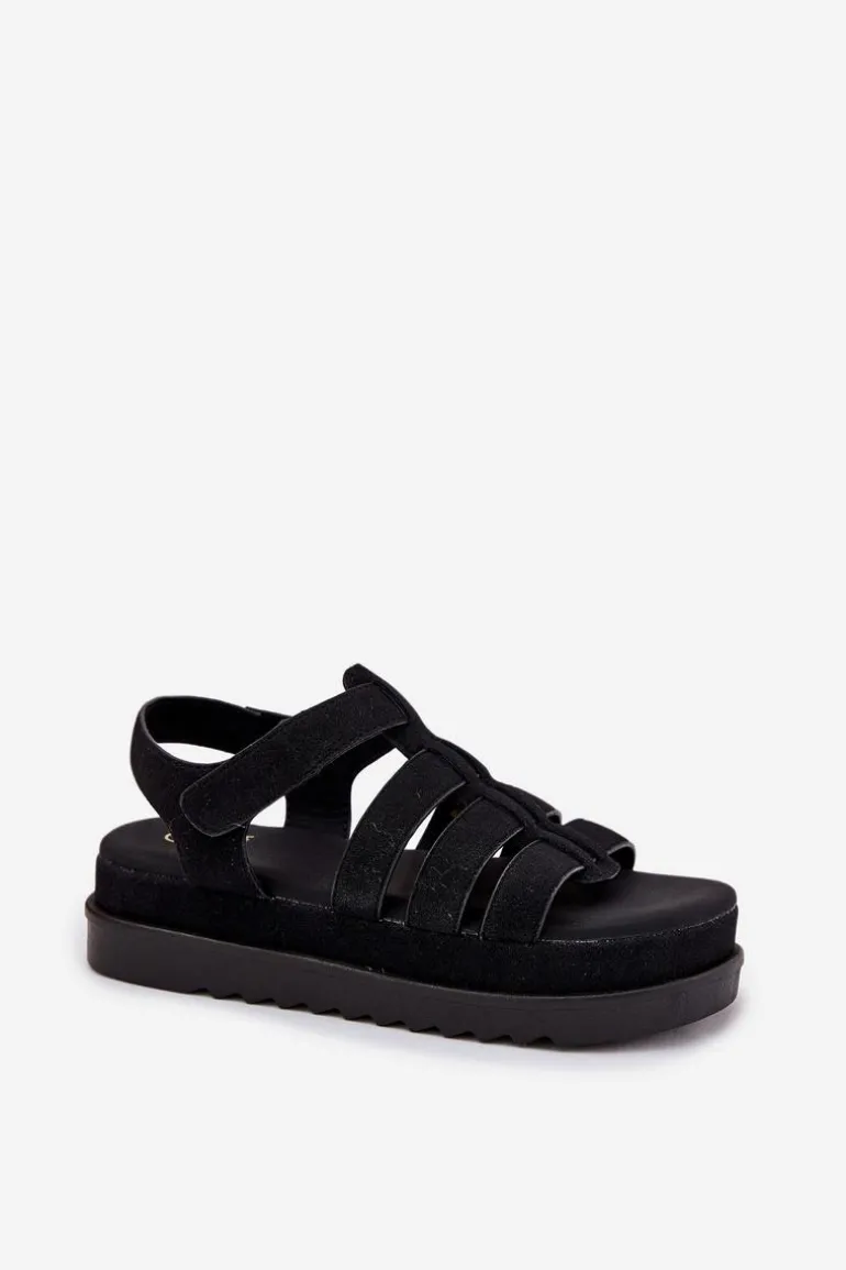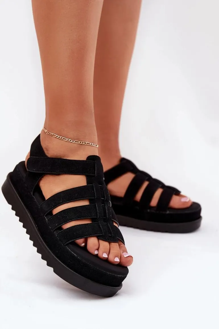 Damskie sandały z eko zamszu to idealna propozycja na ciepłe dni. Osadzone na platformie, zapewniają komfort i lekkość podczas chodzenia. Model zapinany na rzep umożliwia łatwe dopasowanie, a paski z przodu dodają im stylowego wyglądu. Te sandały doskonale sprawdzą się w letnich stylizacjach, łącząc funkcjonalność z modnym wyglądem. Przy wyborze rozmiaru prosimy sugerować się tabelą rozmiarów.
