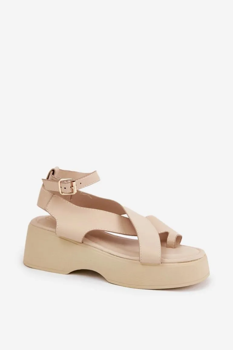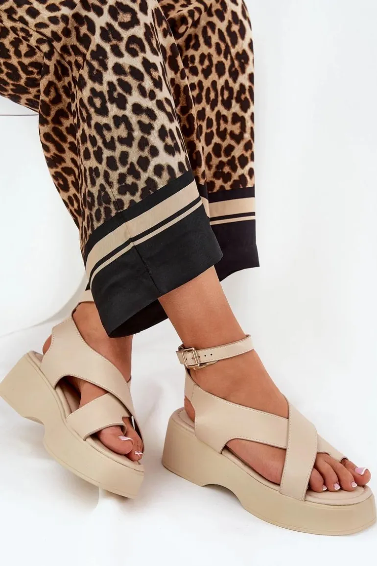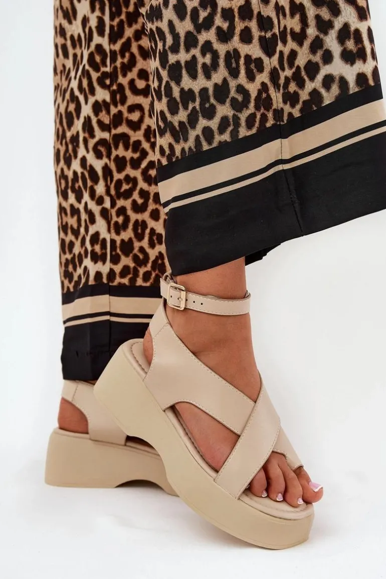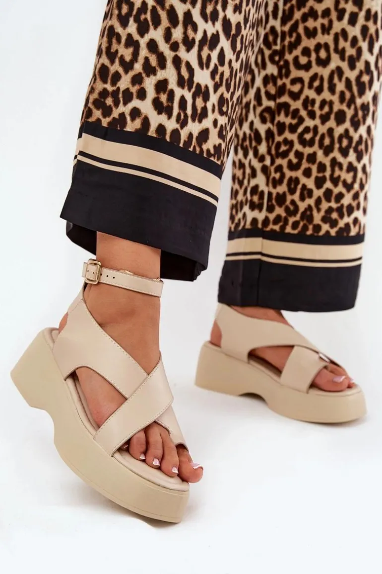 Sandały damskie z eko skóry, osadzone na platformie i delikatnym koturnie, które łączą wygodę z modnym wyglądem. Zapinane wokół kostki na sprzączkę z regulowanym paskiem, co pozwala na idealne dopasowanie do stopy. Miękka wkładka zapewnia komfort przez cały dzień. Idealne na ciepłe dni, te sandały doskonale komponują się z sukienkami, spódnicami oraz spodniami, dodając każdej stylizacji lekkości. Przy wyborze rozmiaru prosimy sugerować się tabelą rozmiarów.