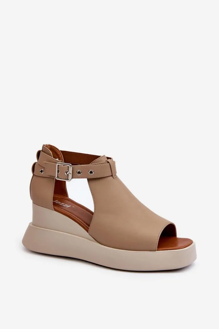 Sandały damskie marki Jezzi wykonane z eko skóry. Platforma i koturn nadają im nowoczesny wygląd i zapewniają wygodę noszenia. Góra cholewki ozdobiona paskami. Te sandały z pewnością będą przyciągać uwagę! Przy wyborze rozmiaru prosimy sugerować się tabelą rozmiarów.