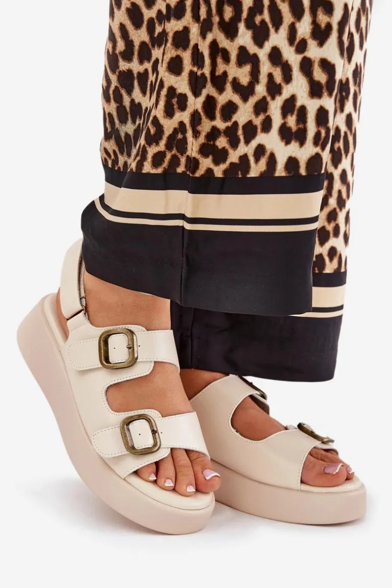 Sandały Damskie Na Platformie I Koturnie Z Klamrami Beżowe Genorre