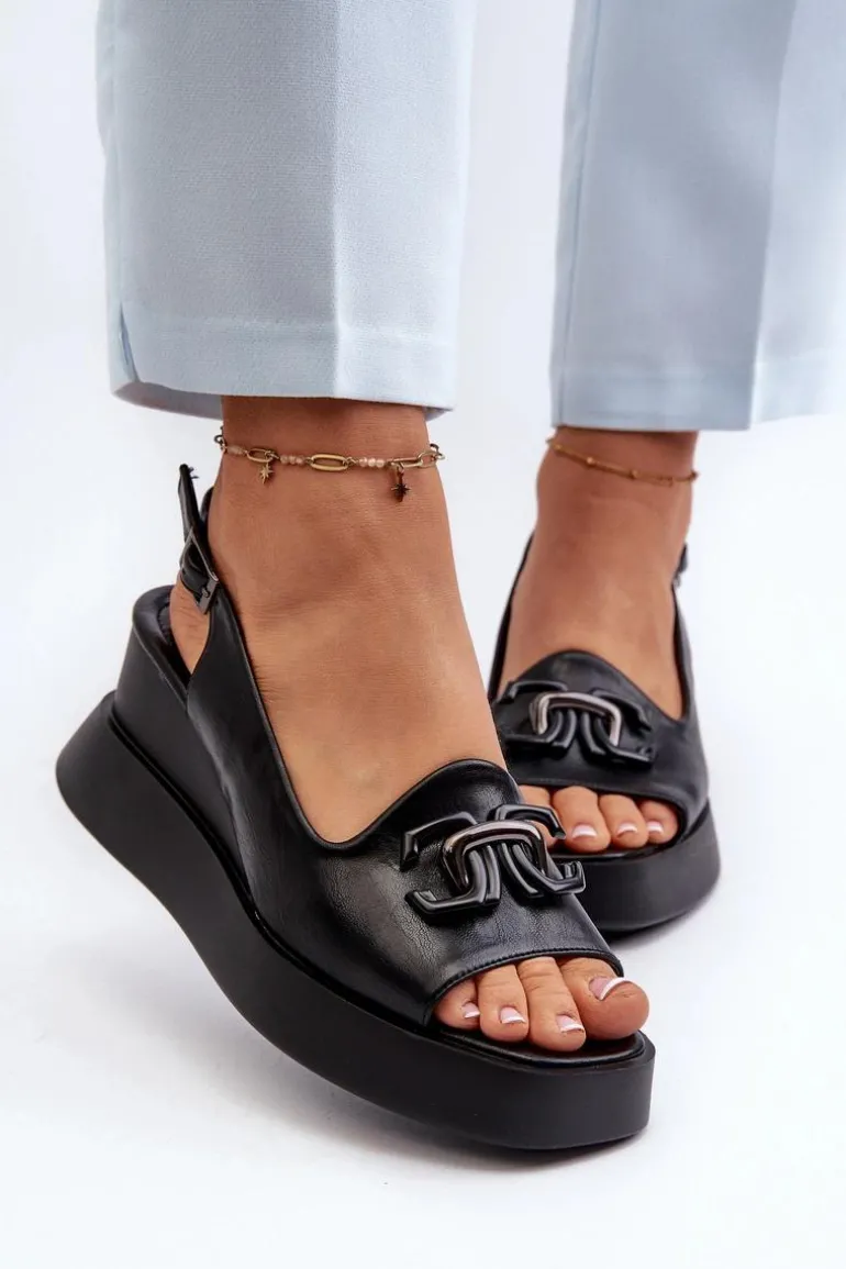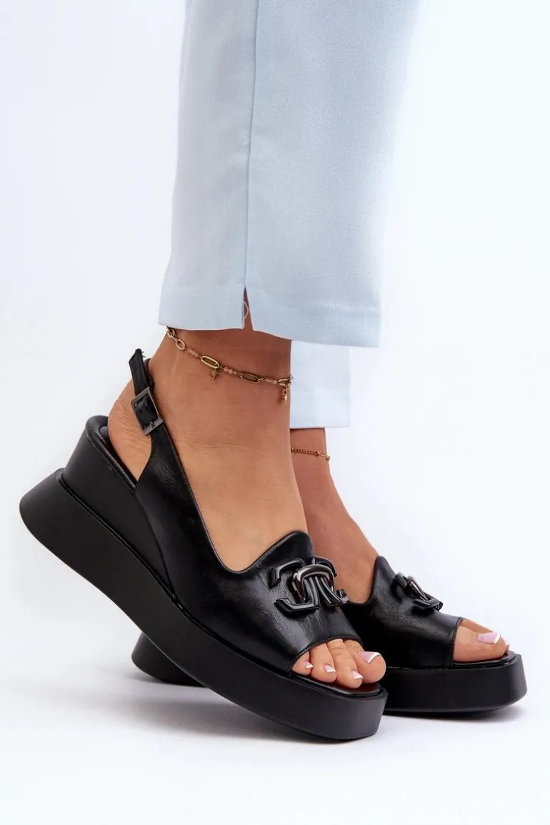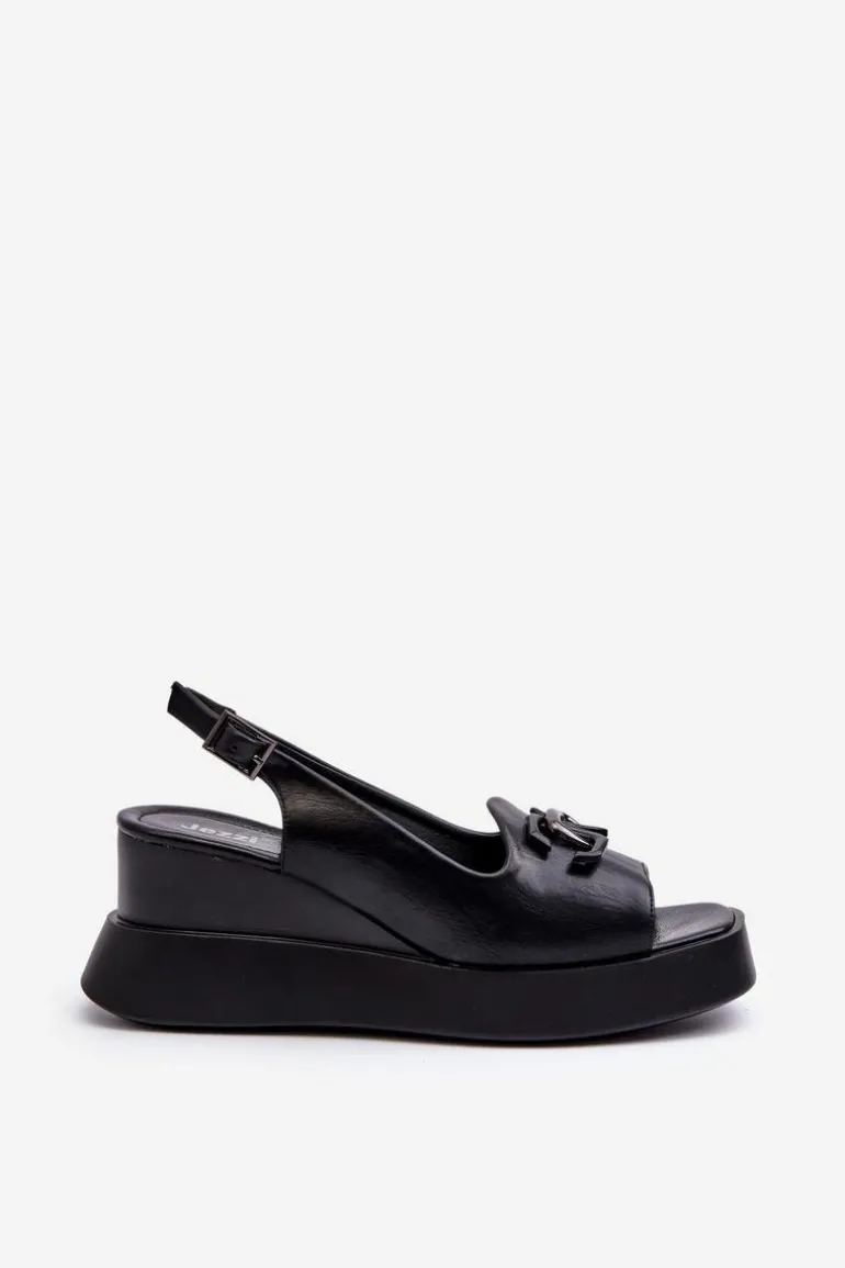 Sandały Damskie Na Platformie I Koturnie Z Ozdobą Czarne Janesca