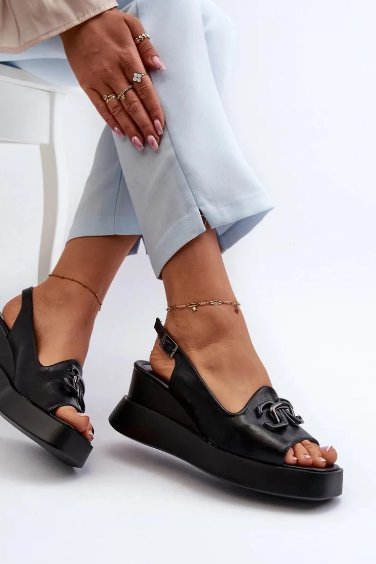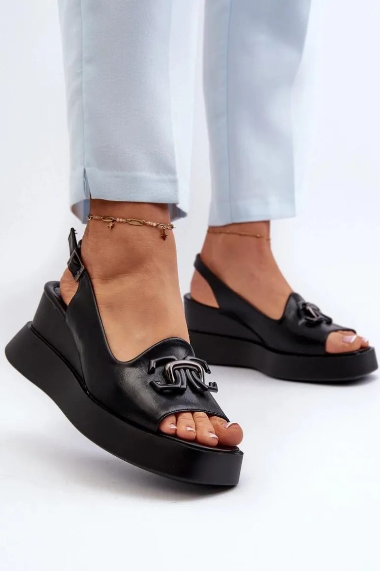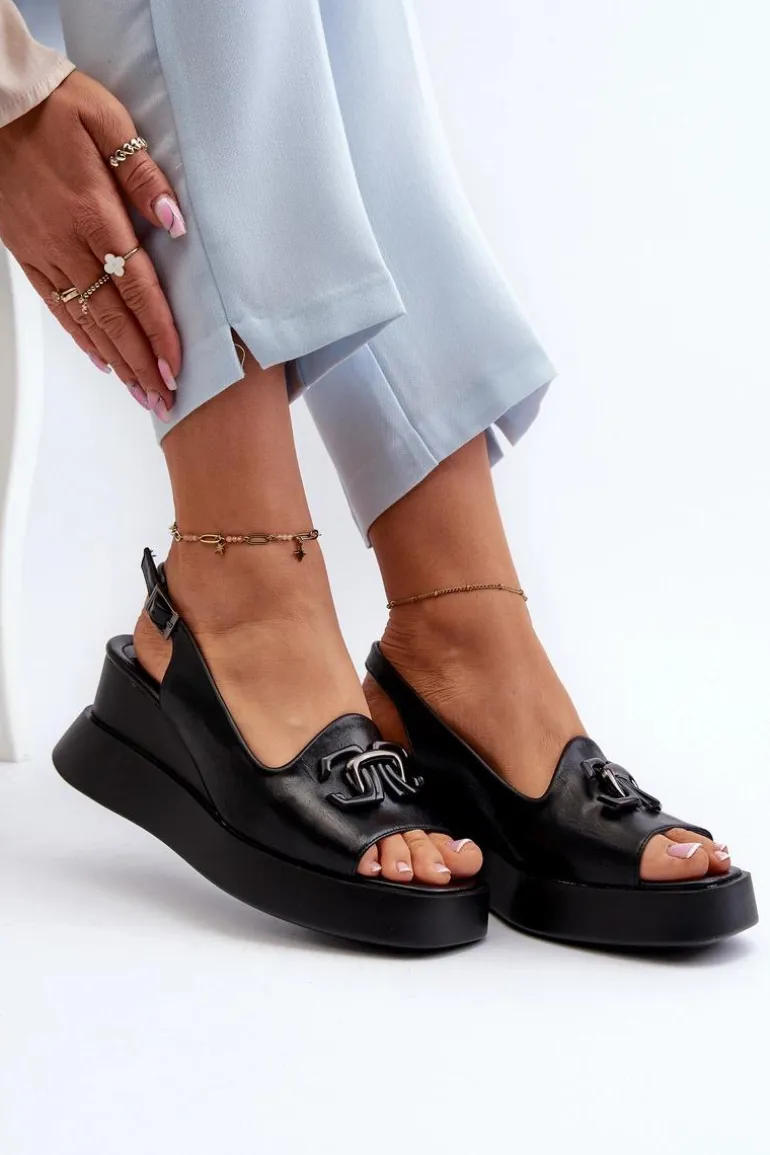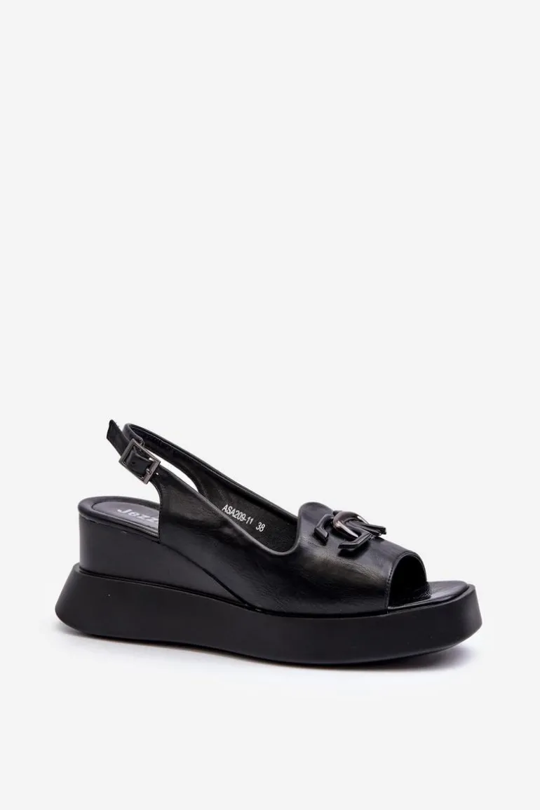 Sandały Damskie Na Platformie I Koturnie Z Ozdobą Czarne Janesca