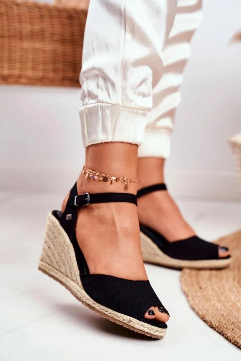 Sandały Damskie Na Plecionej Koturnie Big Star Czarne DD274A209