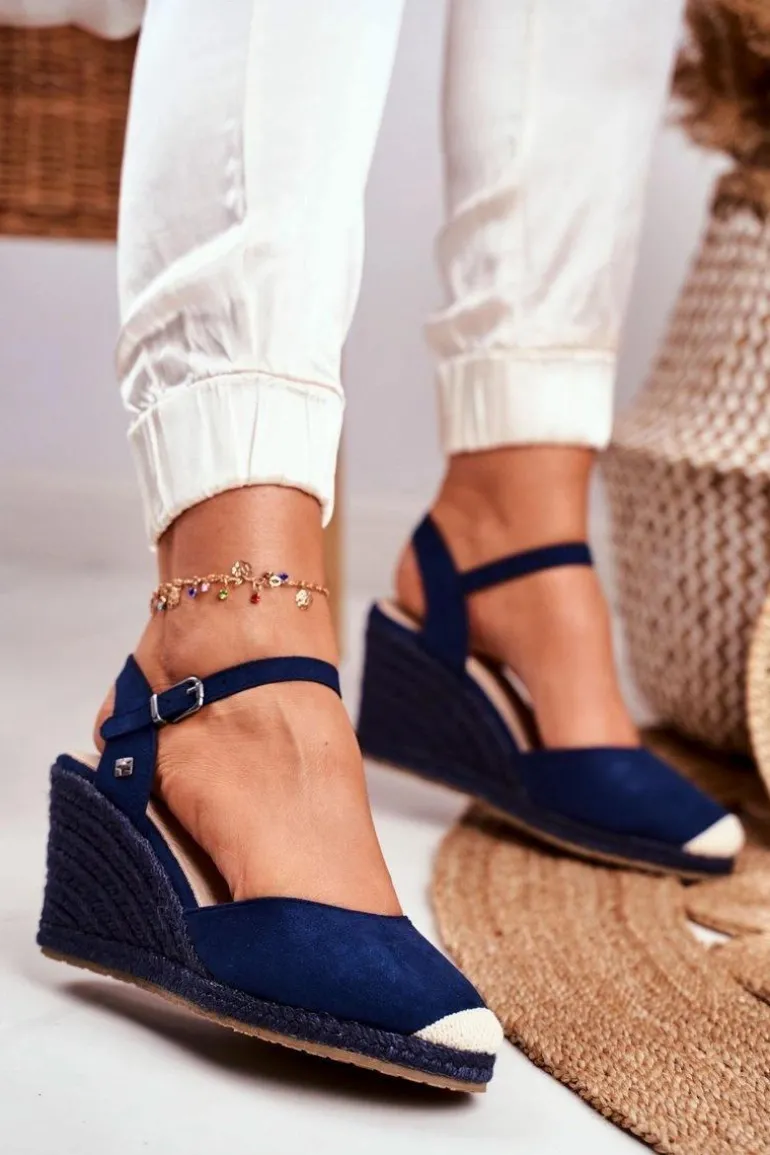 Sandały Damskie Na Plecionej Koturnie Big Star Granatowe DD274A172