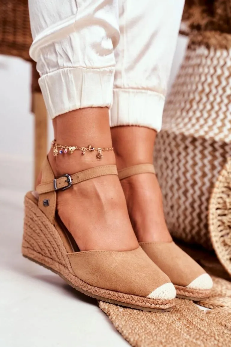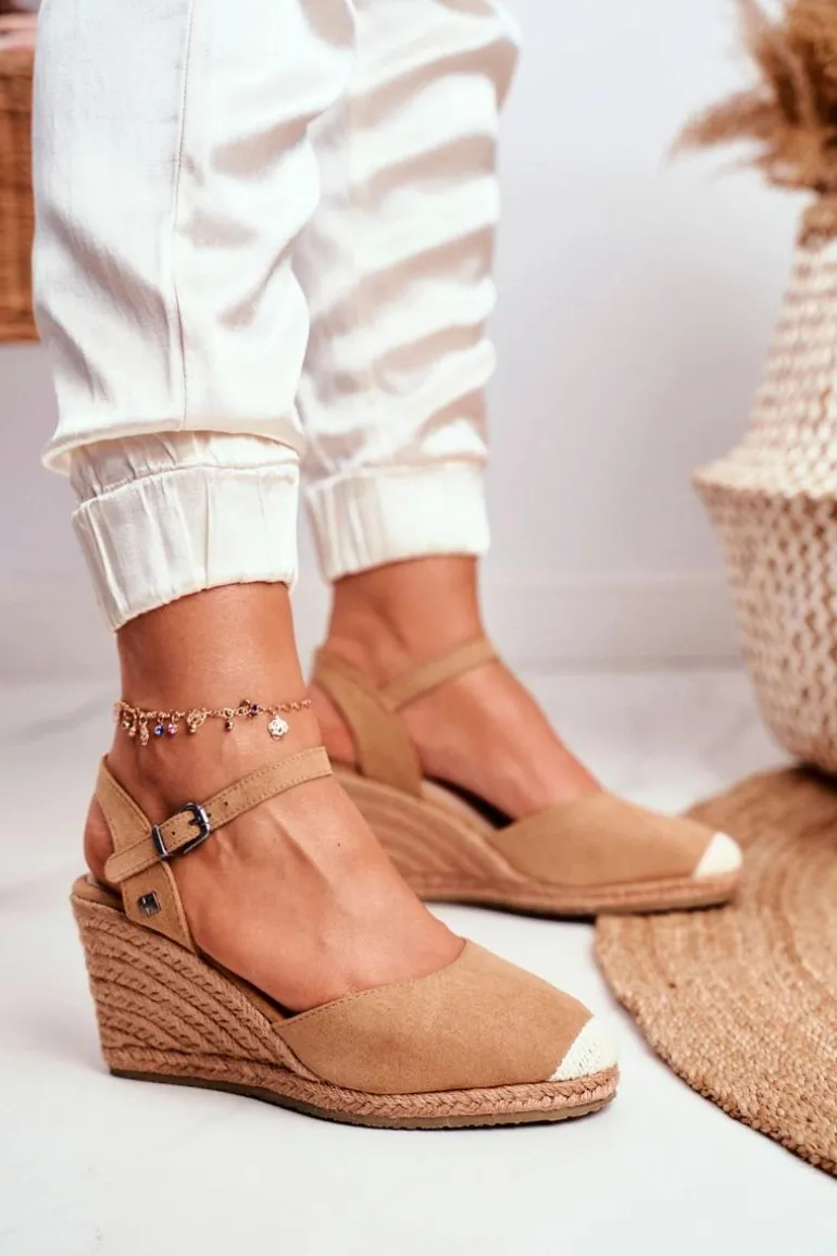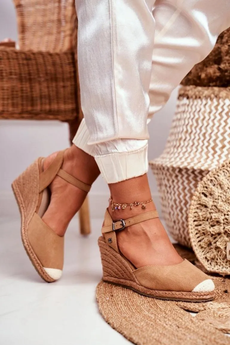 Sandały Damskie Na Plecionej Koturnie Big Star Jasnobrązowe DD274A169