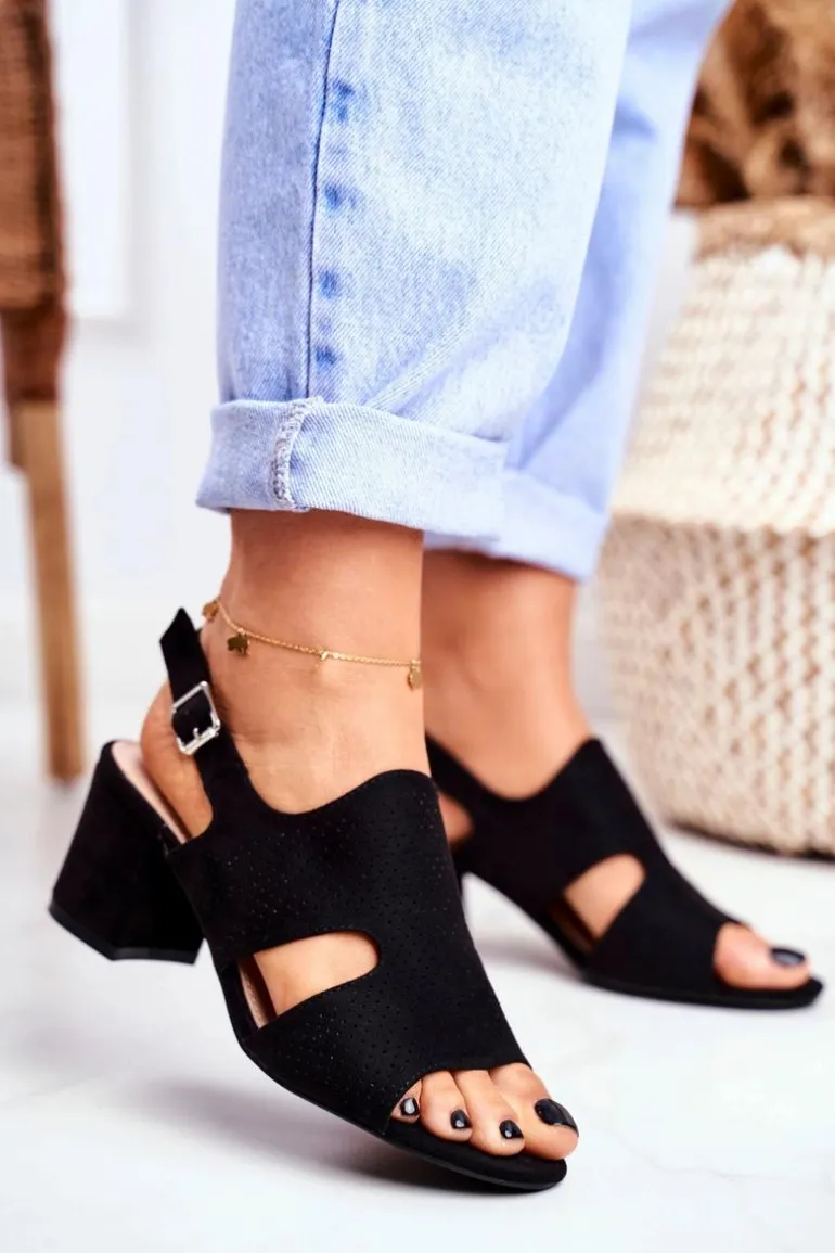 Sandały Damskie Na Słupku Ażurowe Czarne Valery