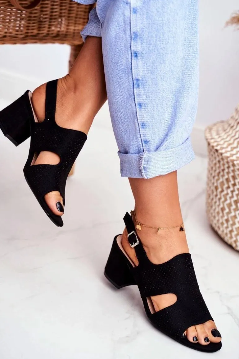 Wygodne sandały to marzenie każdej kobiety, a co jeśli będą jeszcze eleganckie, kobiece, przewiewne i stabilne? Wówczas muszą być Twoje już dziś! Takie buty nie są często spotykane na sklepowych półkach. O Twój komfort zadba miękka wkładka z eko skóry oraz stabilny, 7cm obcas w formie grubego słupka. Wspaniały wzór wierzchni w liczne, malutkie dziurki sprawi, w połączeniu z odkrytymi palcami, że zostaniesz zauważona, a Twoje stopy będą oddychać nawet w najcieplejsze dni! Sandały sprawdzą się jako piękne dopełnienie większości codziennych oraz wieczorowych stylizacji. Przy wyborze rozmiaru prosimy sugerować się tabelą rozmiarów.
