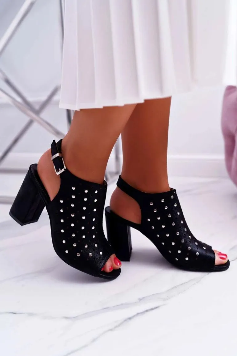 Sandały Damskie Na Słupku Ażurowe z Dżetami Czarne Hendrix