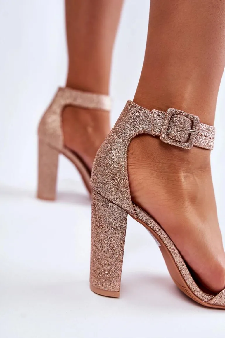 Sandały Damskie Na Słupku Brokat Złote Joalice