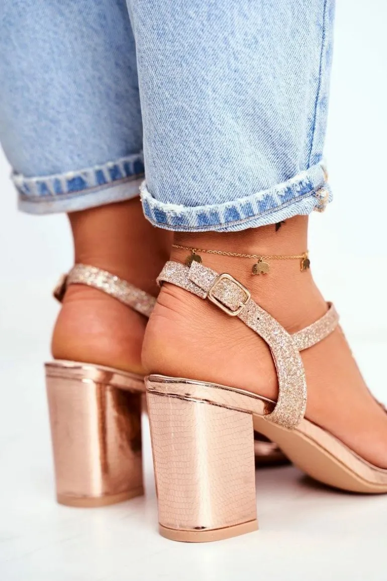 Sandały Damskie Na Słupku Brokatowe Champagne Perfecto
