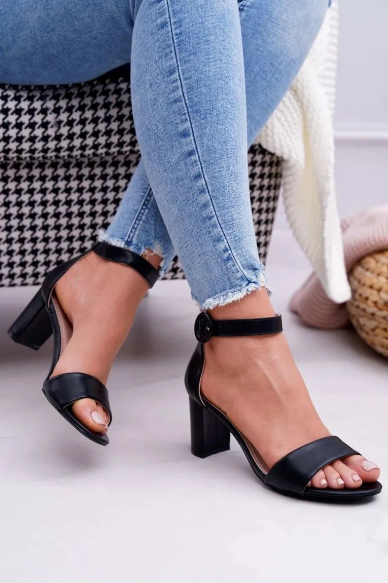 Klasyczne sandały na słupku. Buty wykonane są z eko skóry. O Twój komfort zadba miękka wkładka ze skóry naturalnej. Ponadczasowy fason, który musi znaleźć się w Twojej garderobie! Koniecznie sprawdź całą naszą kolekcję damskich sandałów! Przy wyborze rozmiaru prosimy sugerować się tabelą rozmiarów.