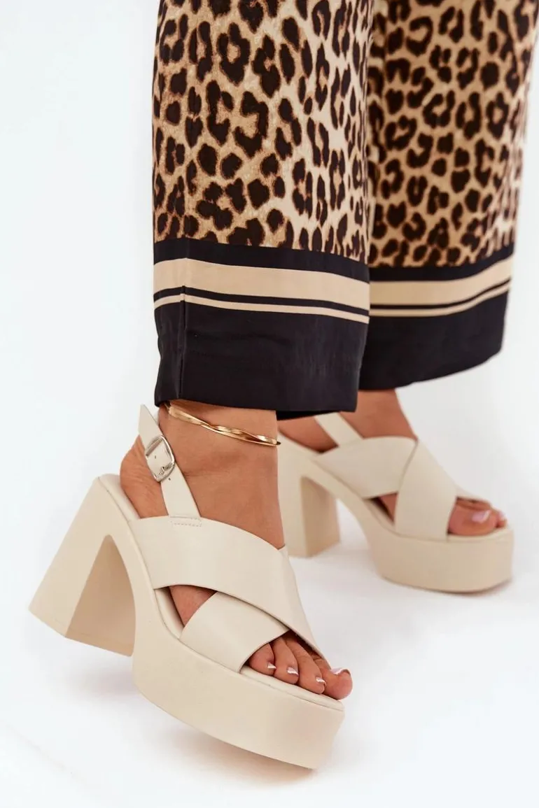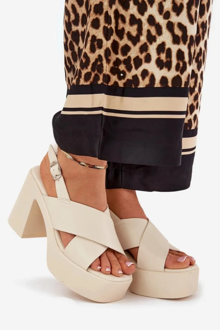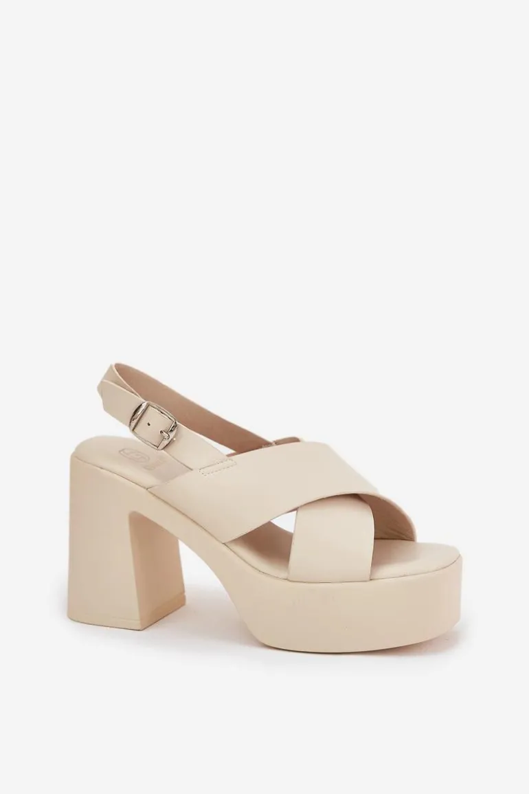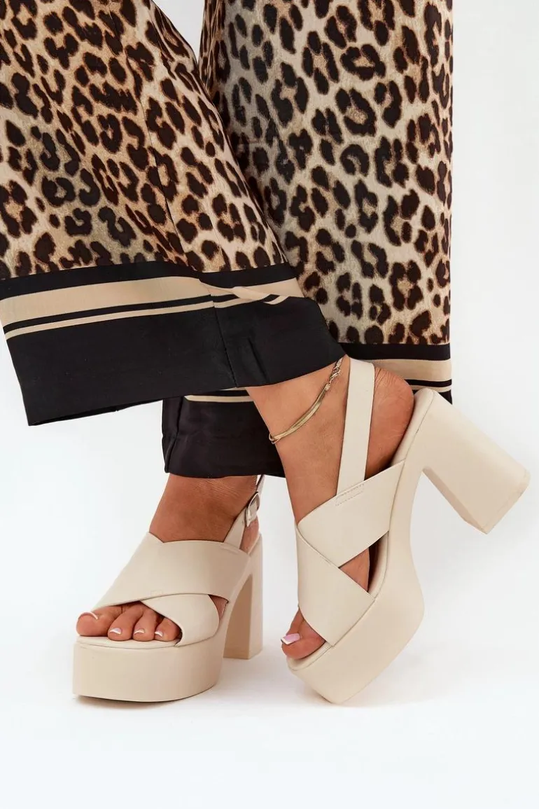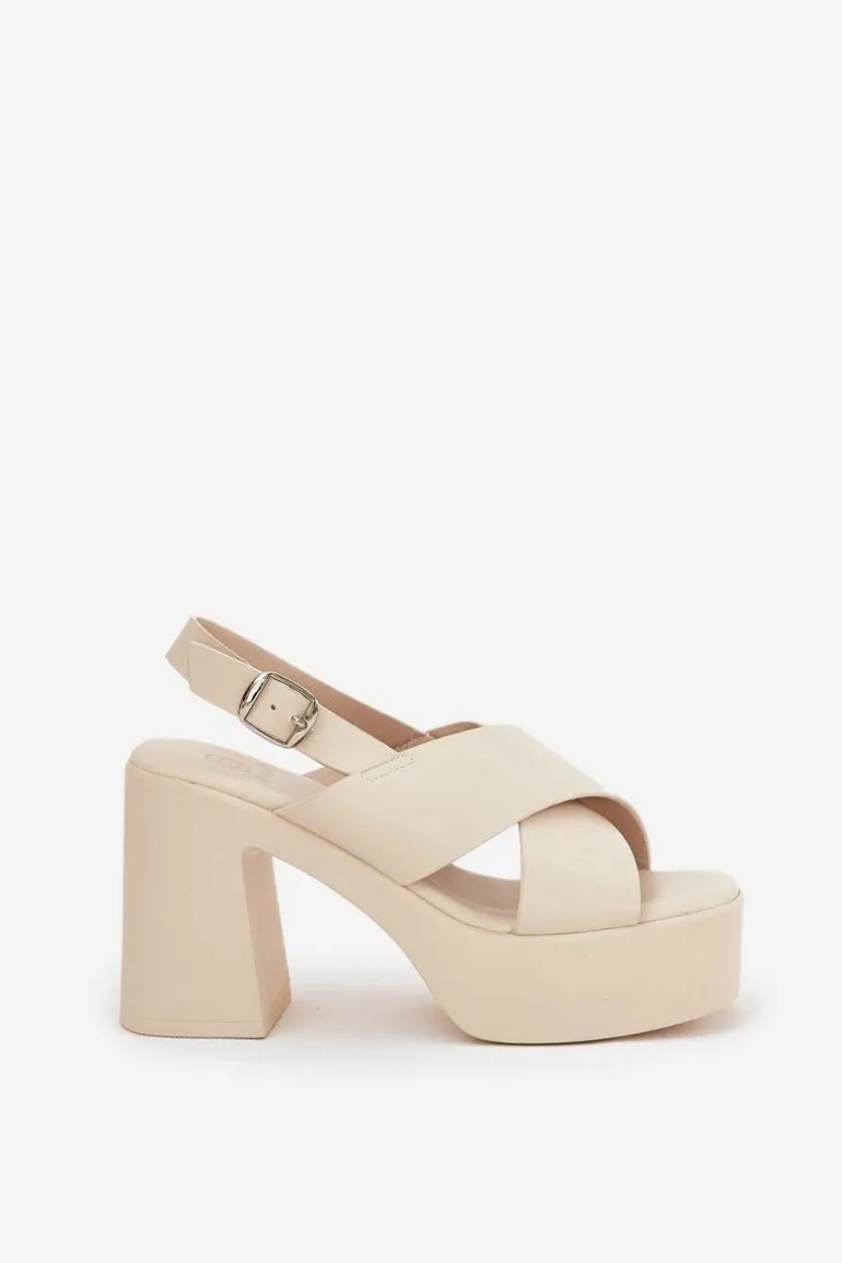 Sandały Damskie Na Słupku I Platformie Z Eko Skóry Jasnobeżowe Annavin