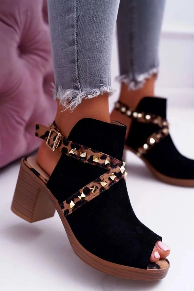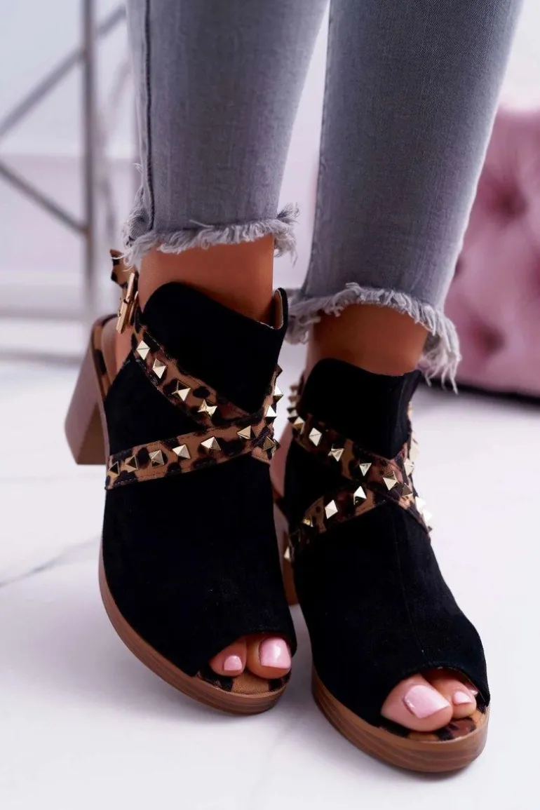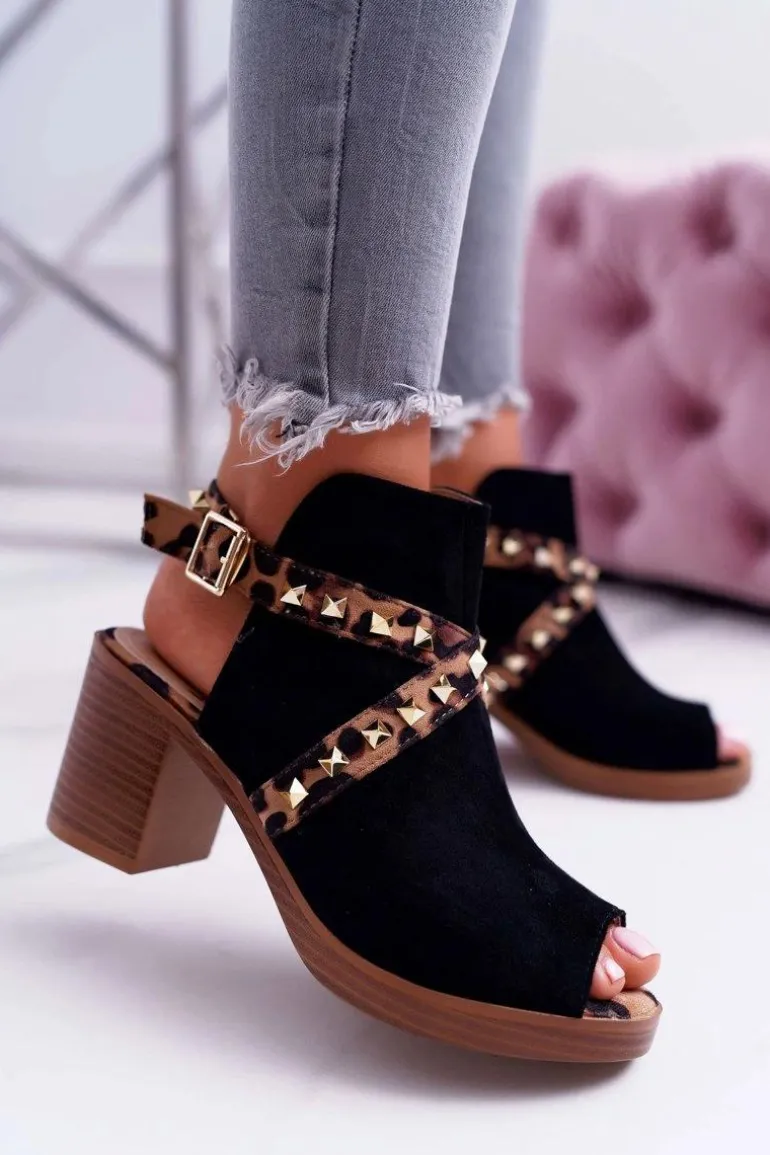 Sandały Damskie Na Słupku Lu Boo Z Cholewką Czarne 318-30 Fiode