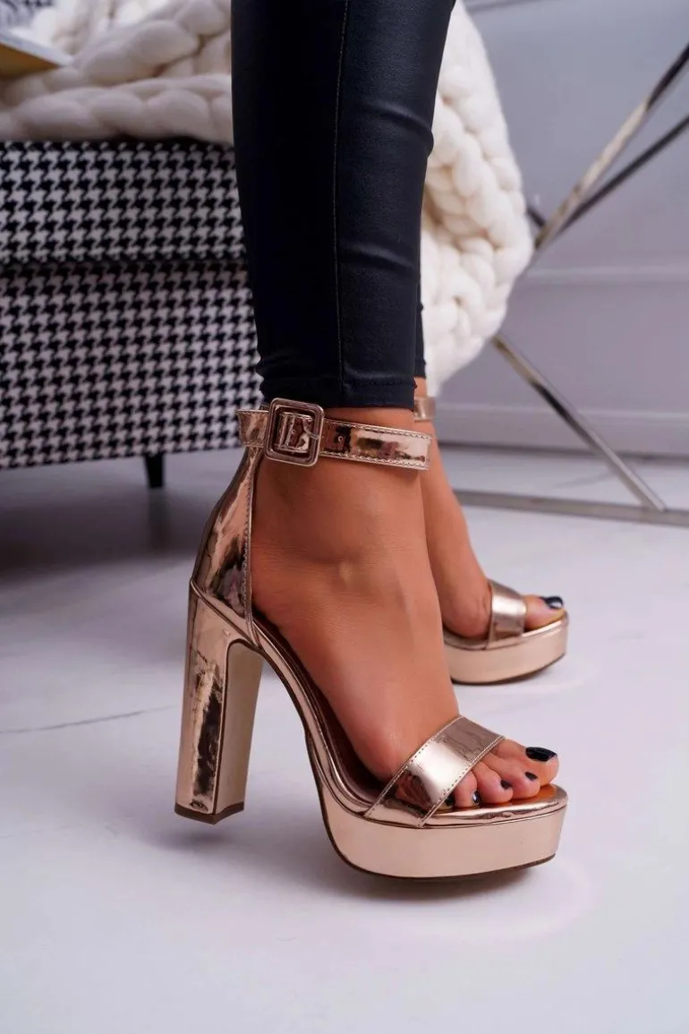 Sandały Damskie Na Słupku Platforma Różowe Złoto Huran