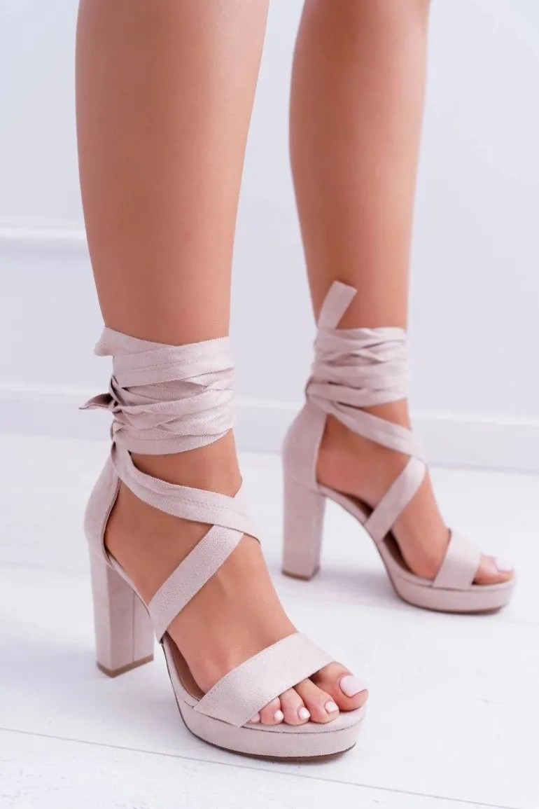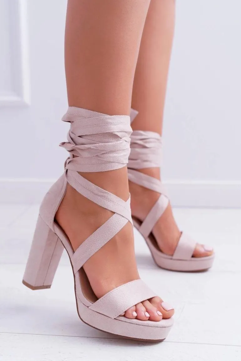 Sandały Damskie Na Słupku Platforma Wiązane Beżowe LaFiesta