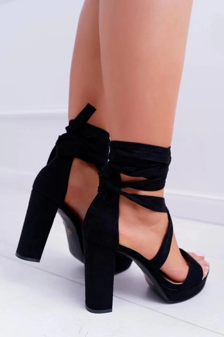 Sandały Damskie Na Słupku Platforma Wiązane Czarne LaFiesta