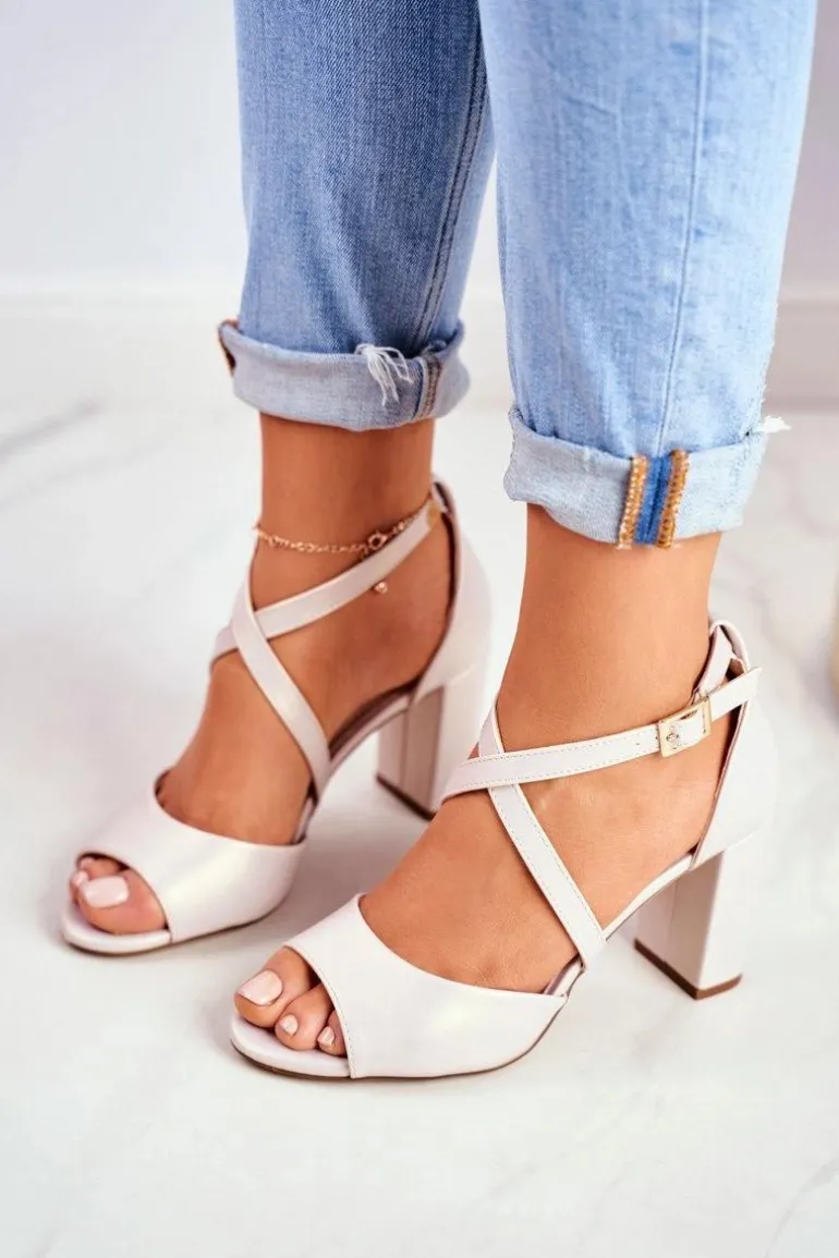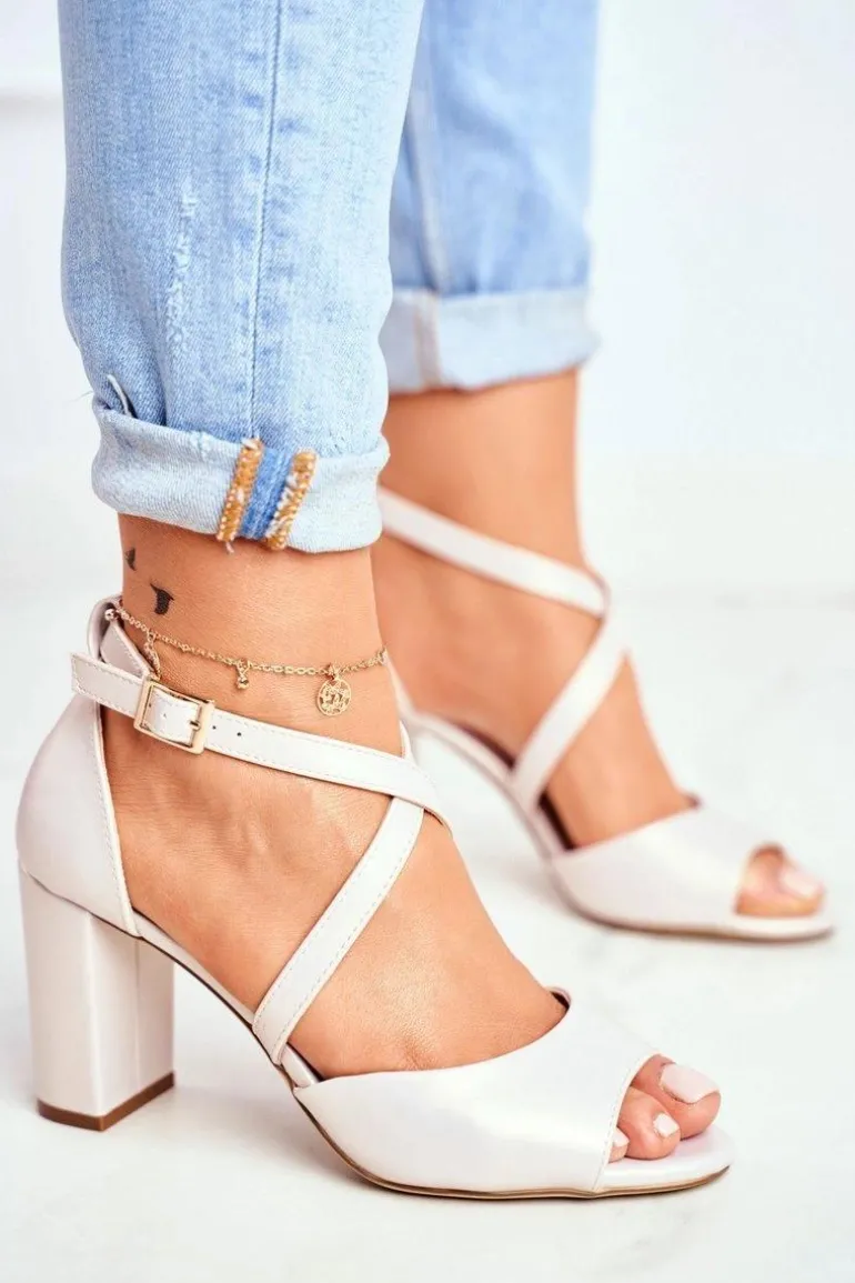 Sandały Damskie Na Słupku Sergio Leone Beżowa Perła SK865