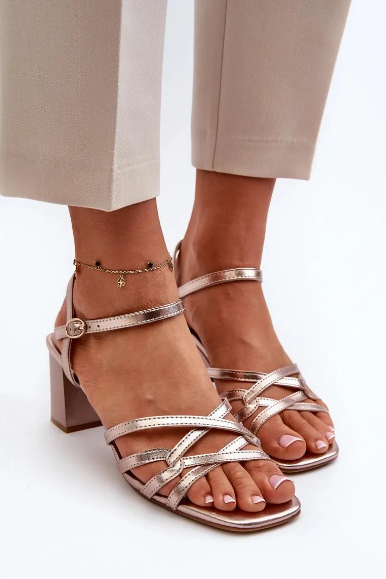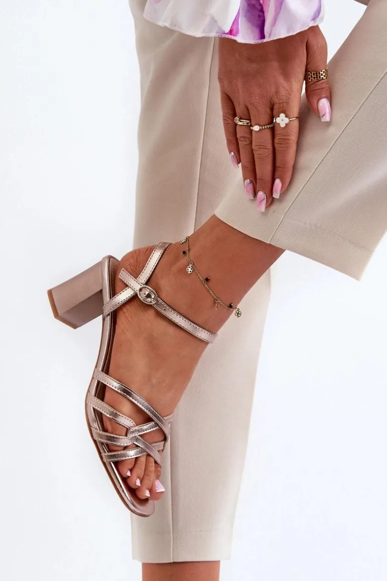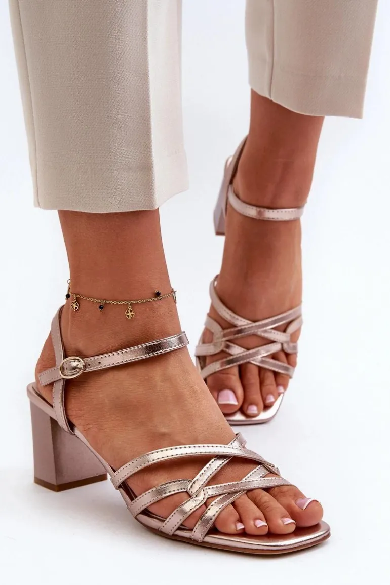 Eleganckie sandały damskie z eko skóry będą idealnym wyborem na różne uroczystości. Z przodu połączone paseczki. Osadzone na obcasie w postaci słupka. Zapinane na regulowany pasek ze sprzączką. Modny design sprawia, że doskonale będą pasować zarówno do formalnych wydarzeń, jak i bardziej swobodnych okazji. Przy wyborze rozmiaru prosimy sugerować się tabelą rozmiarów.