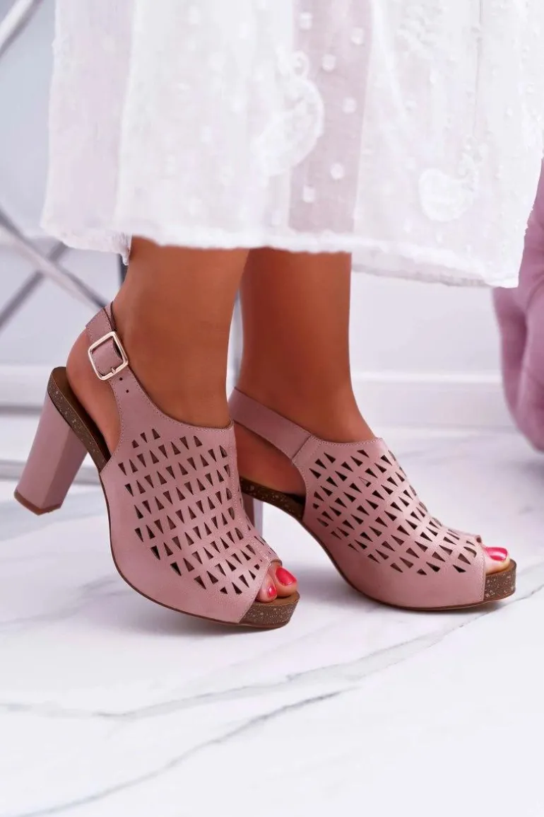 Wygodne sandały to marzenie każdej kobiety! Stabilny słupek zapewni Ci gwarancje dobrego samopoczucia oraz gustownego wyglądu. O nasz komfort zadba skórzana wkładka typu soft comfort. Wspaniały ażurowy wzór w połączeniu z odkrytymi palcami sprawi że zostaniesz zauważona! Model klasycznie zapinany na sprzączkę. Sandały sprawdzą się w każdej codziennej oraz wieczorowej sytuacji. Przy wyborze rozmiaru prosimy sugerować się tabelą rozmiarów.